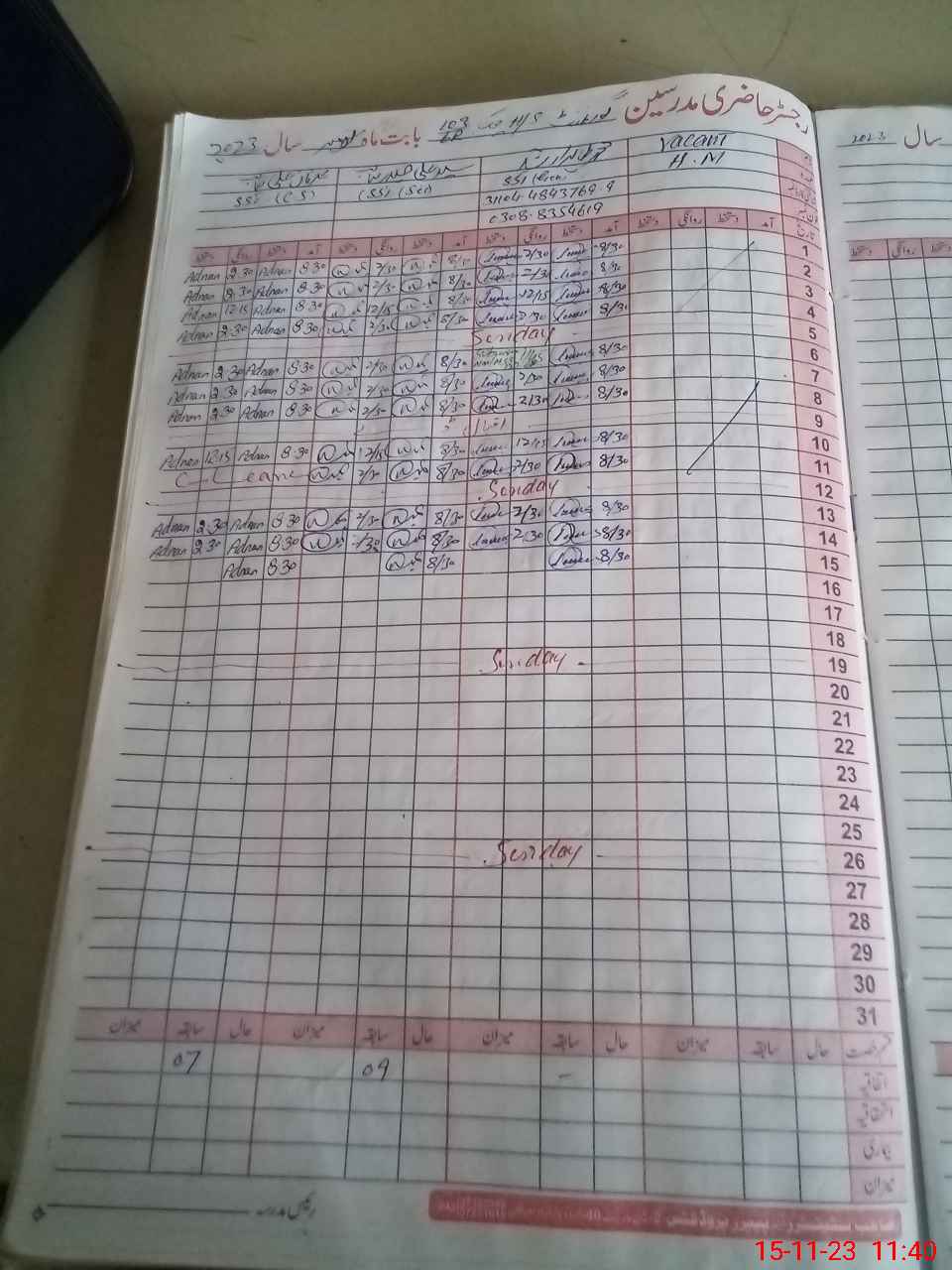 | CNIC | Full Name | Designation | R/C | Absence During Last Calender Month |