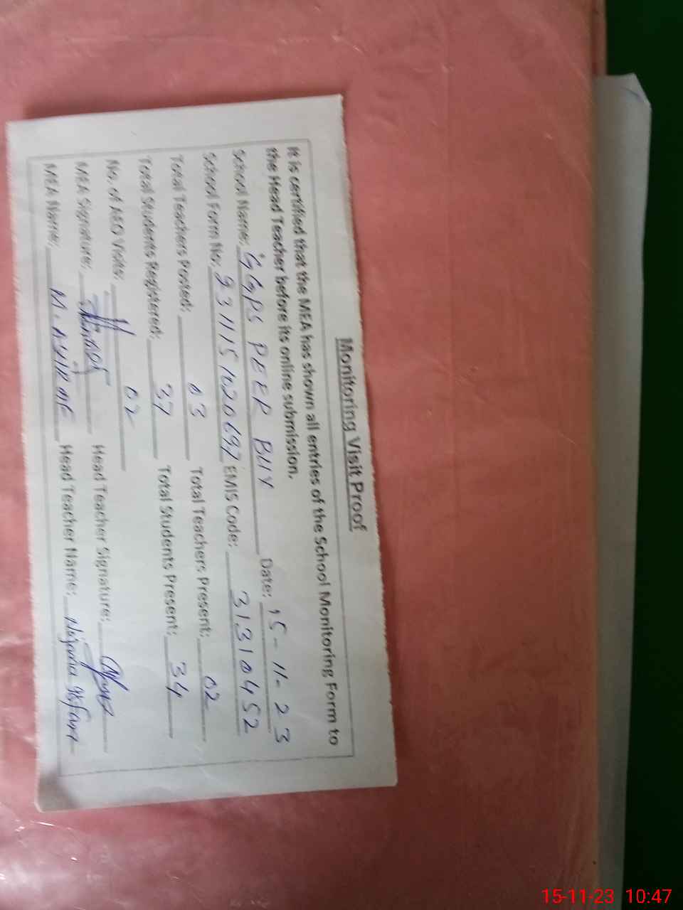 | EMIS Code: 31310452 | Name of School: GGPS HAJI PEER BUKHSH | |||