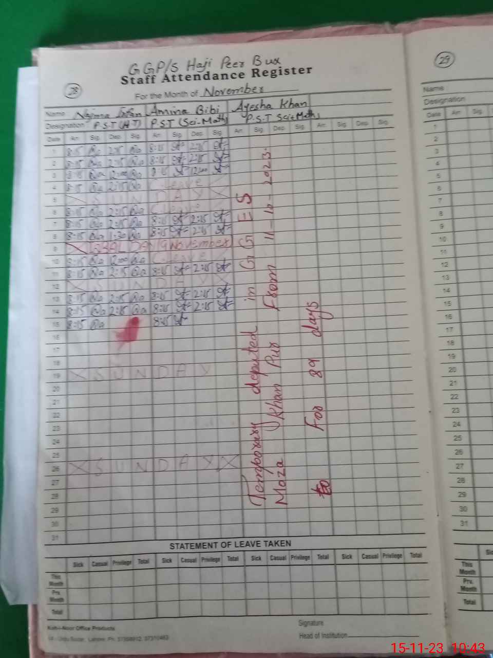 | Name: NA**** IR**** Designation: (School Headmaster's/Headmistress's) PST Phone/Cell Number: 03**** |