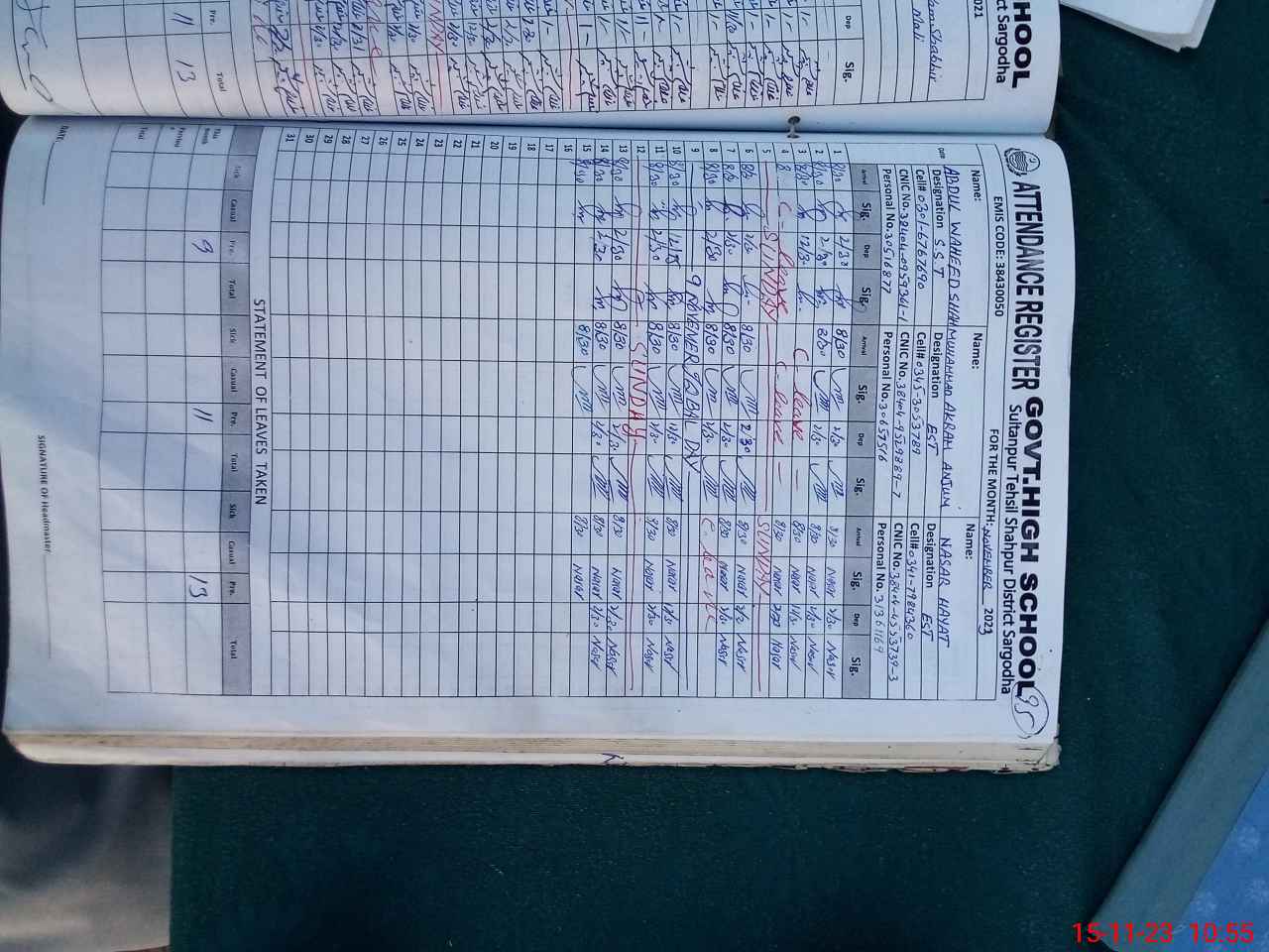 | Name: MU**** AK**** AN**** Designation: (School Headmaster's/Headmistress's) I/C HM (EST) Phone/Cell Number: 03**** |