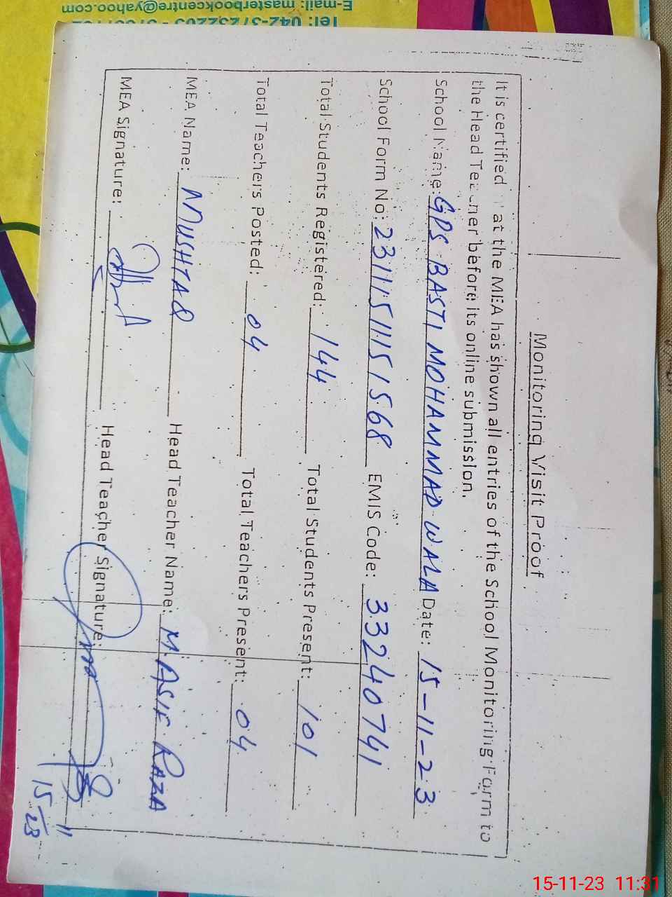 | EMIS Code: 33240741 | Name of School: GPS BASTI MOHAMMAD WALA | |||