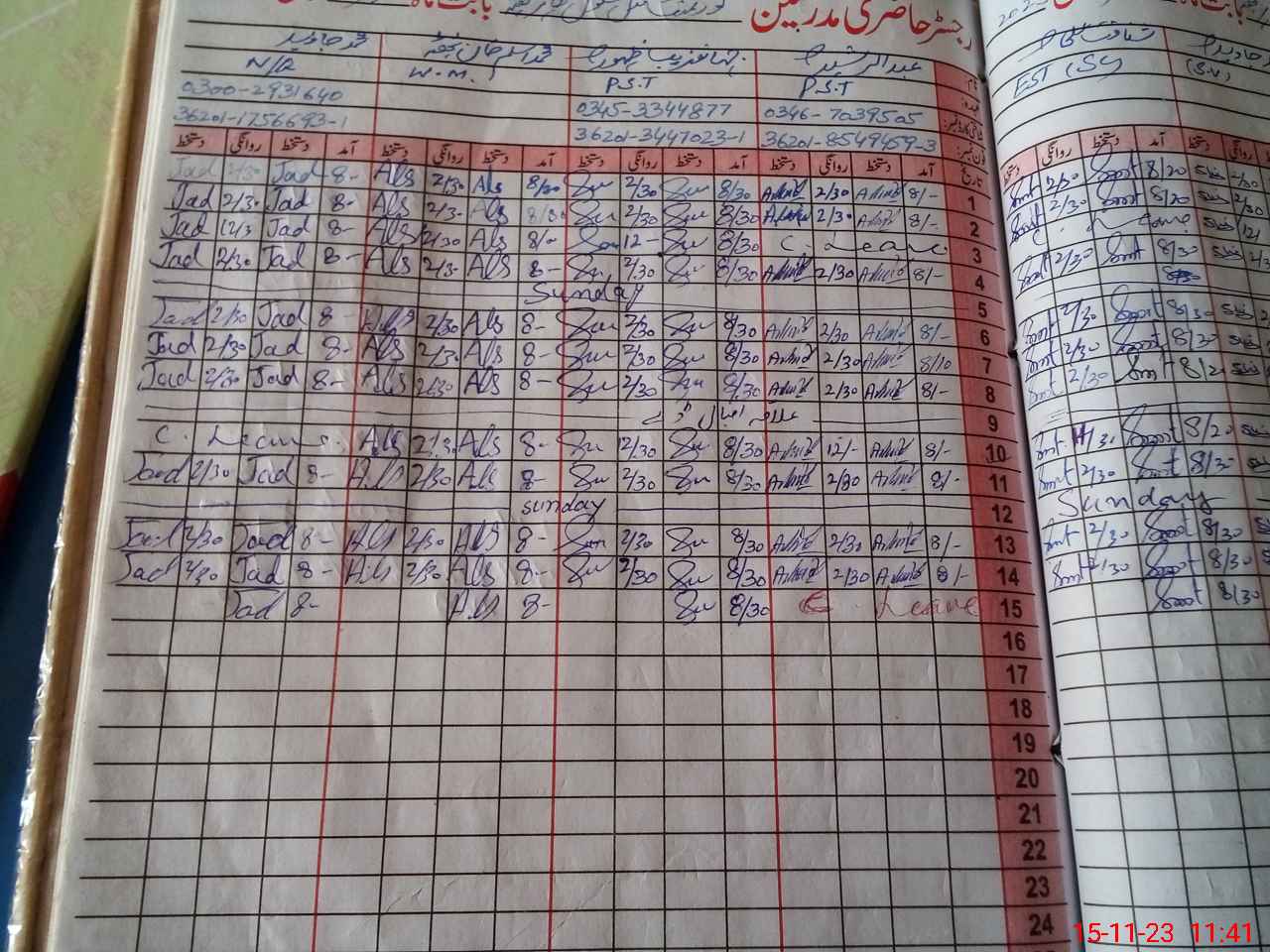 | CNIC | Full Name | Designation | R/C | Absence During Last Calender Month |