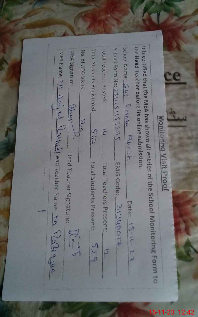 | EMIS Code: 31340017 | Name of School: GHS ROSHAN BHAIT | |||