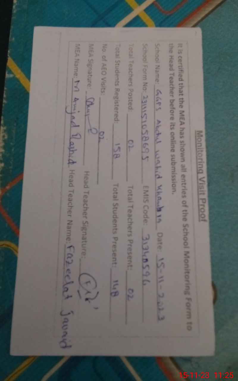 | EMIS Code: 31340596 | Name of School: GGPS ABDUL WAHID KHUMBHRA | |||