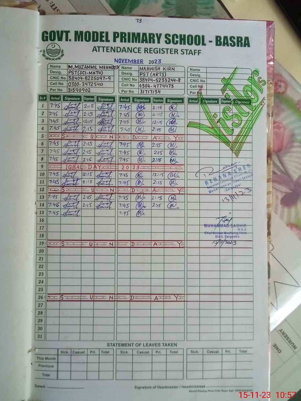 | Name: MU**** MU**** Designation: (School Headmaster's/Headmistress's) PST Phone/Cell Number: 03**** |