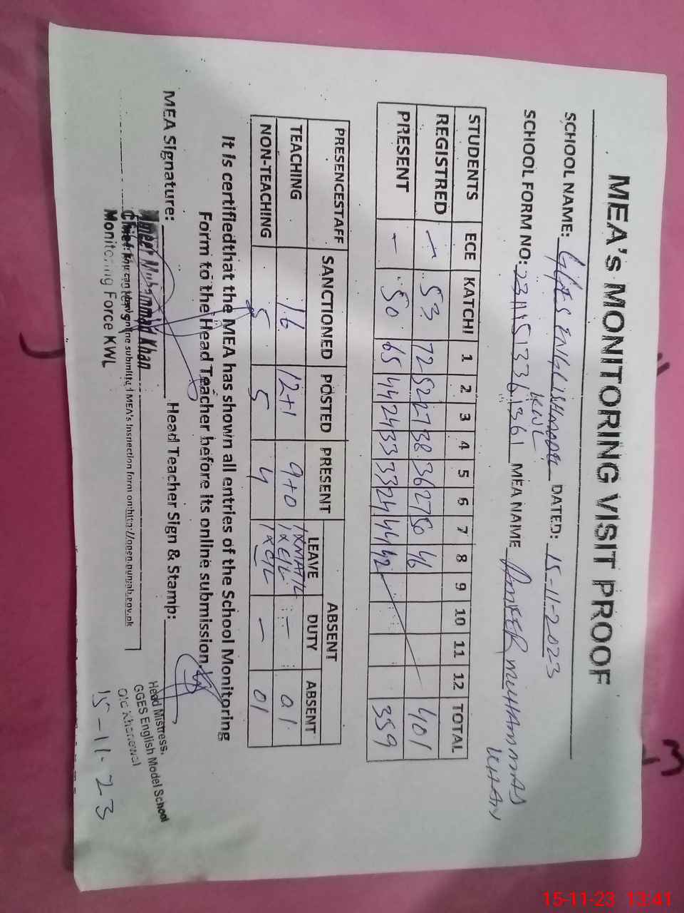 | EMIS Code: 36420093 | Name of School: GGES ENGLISH MODEL KHANEWAL | |||