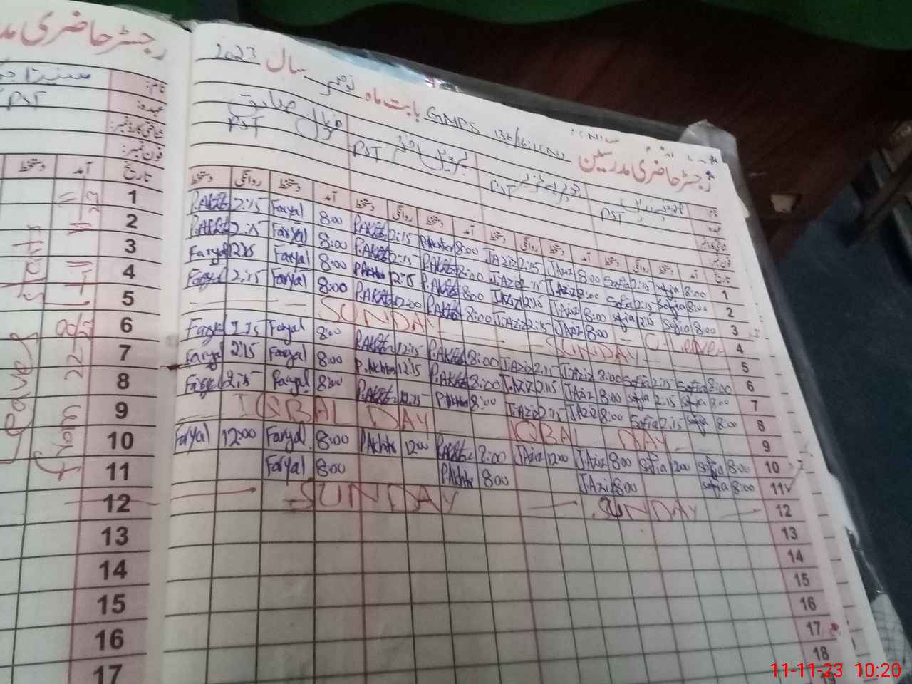 | CNIC | Full Name | Designation | R/C | Absence During Last Calender Month |