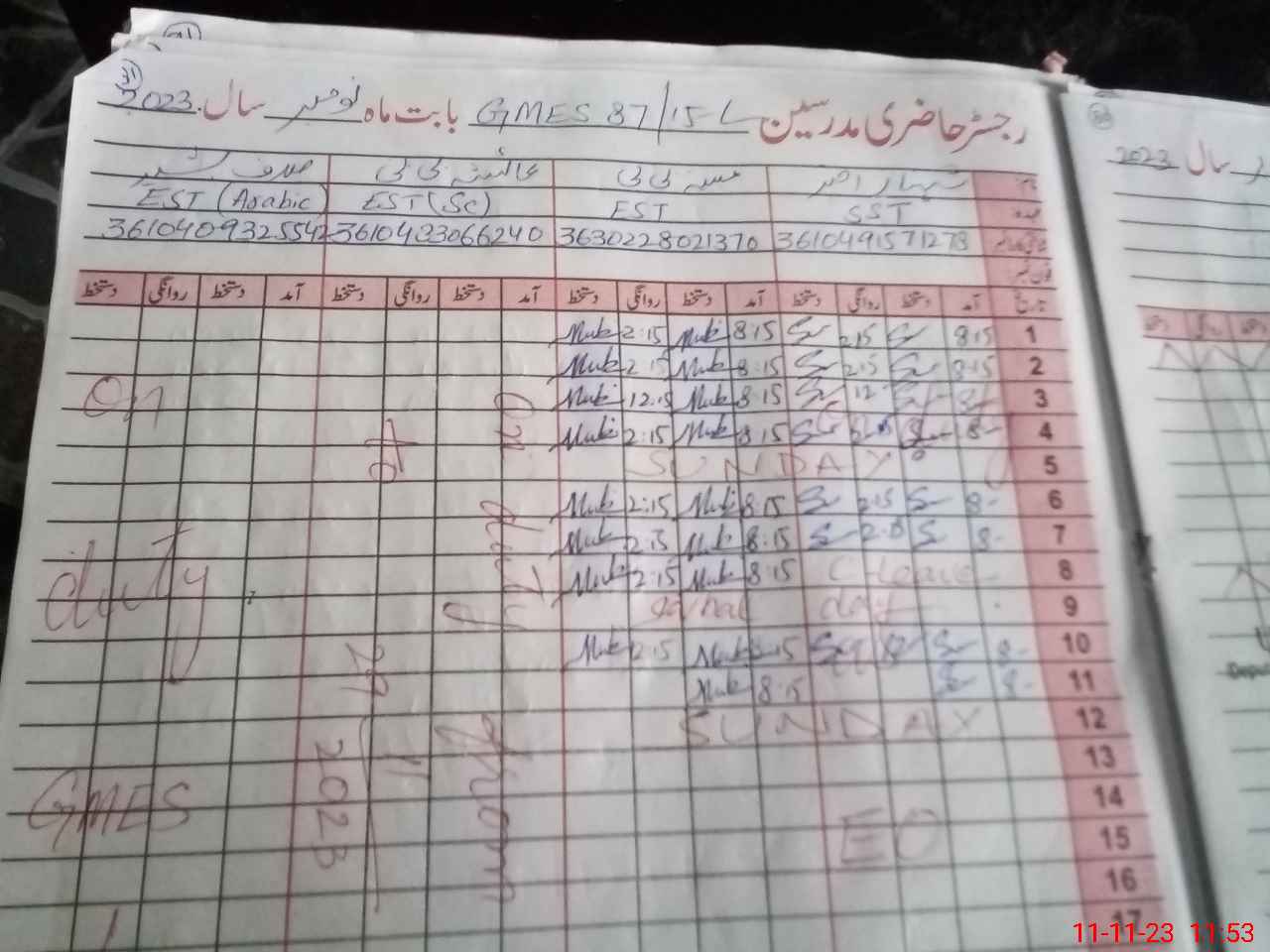 | CNIC | Full Name | Designation | R/C | Absence During Last Calender Month |