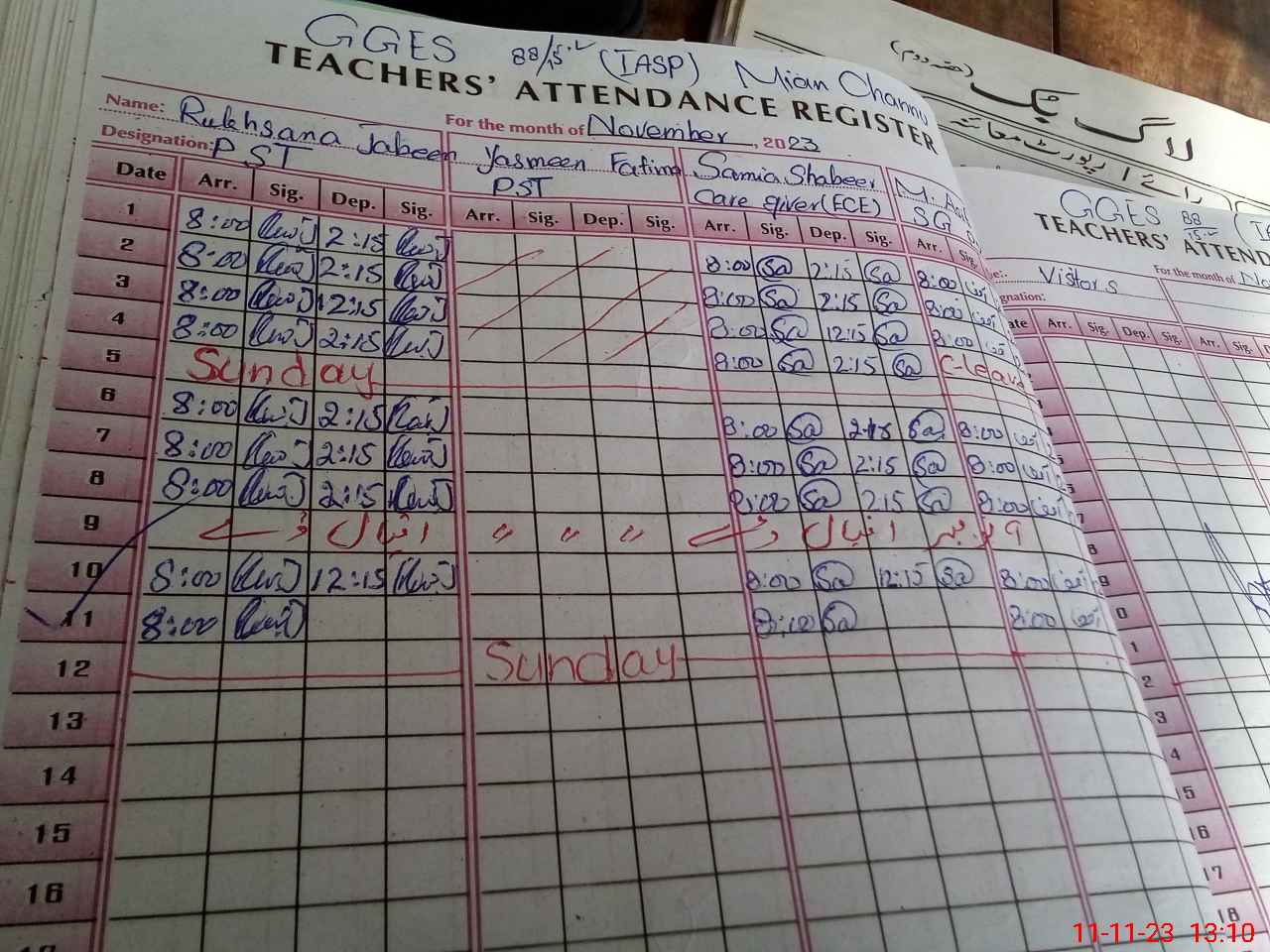 | CNIC | Full Name | Designation | R/C | Absence During Last Calender Month |