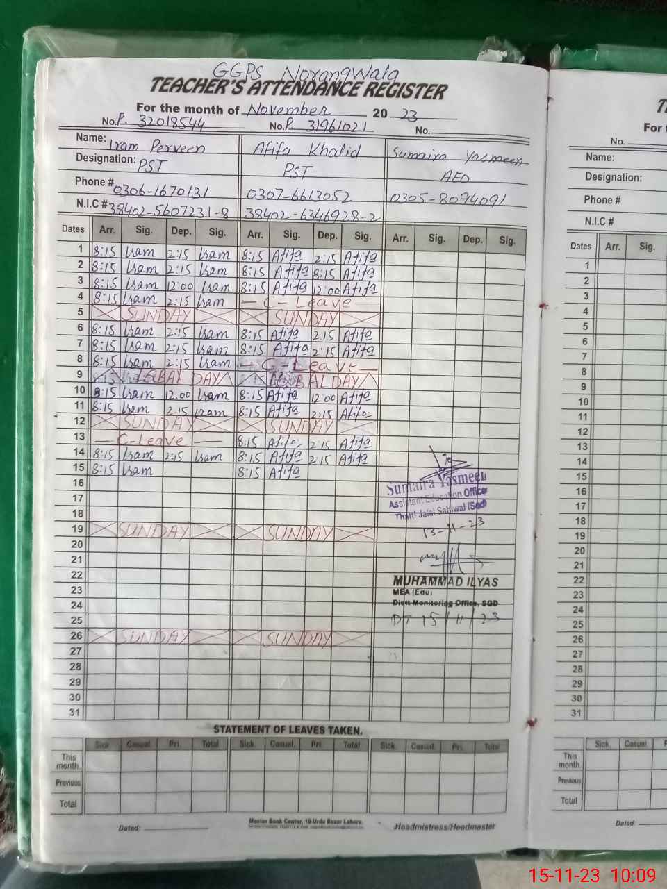 | Name: IR**** PA**** Designation: (School Headmaster's/Headmistress's) PST SCI MATH Phone/Cell Number: 03**** |