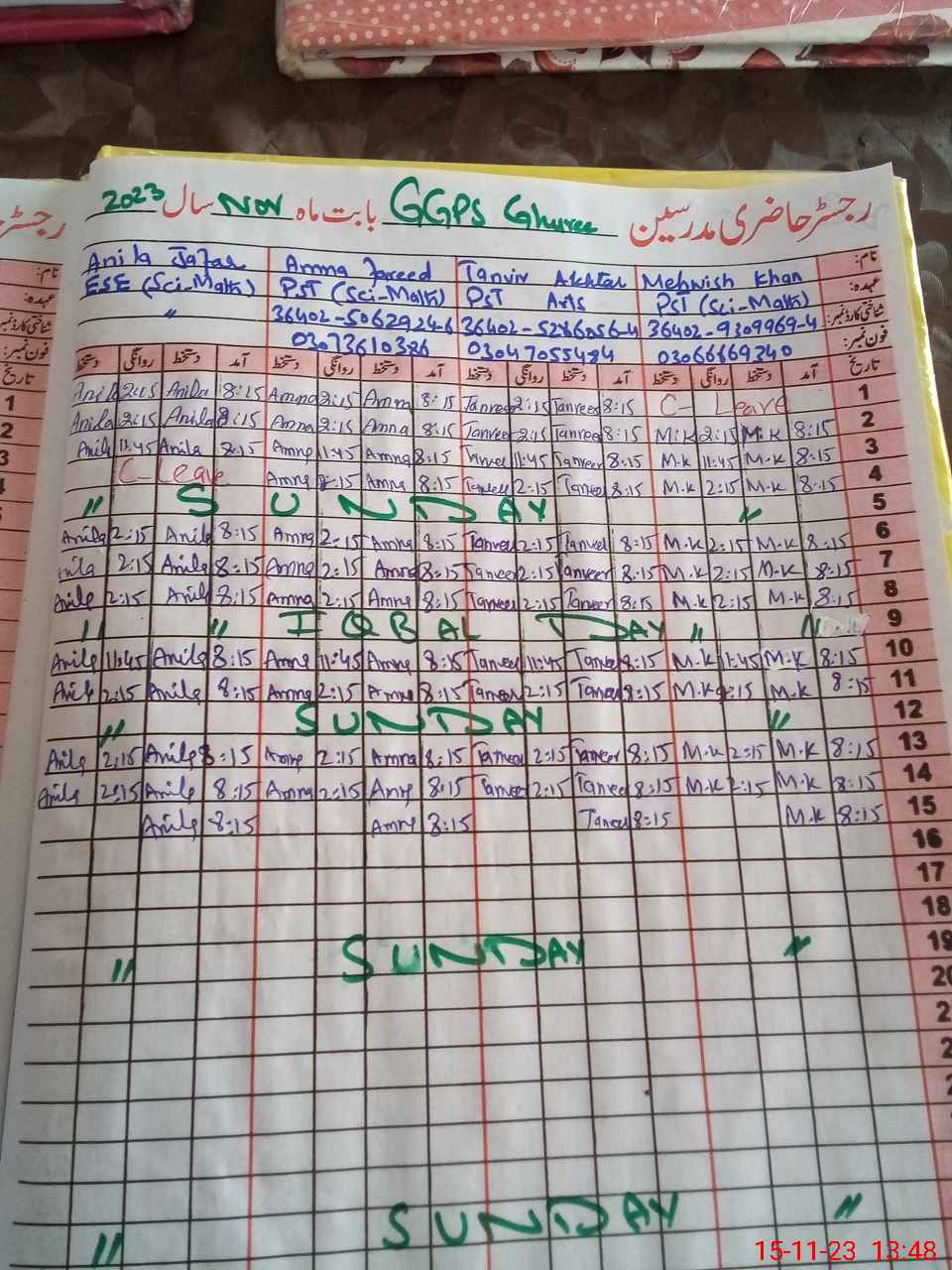 | CNIC | Full Name | Designation | R/C | Absence During Last Calender Month |