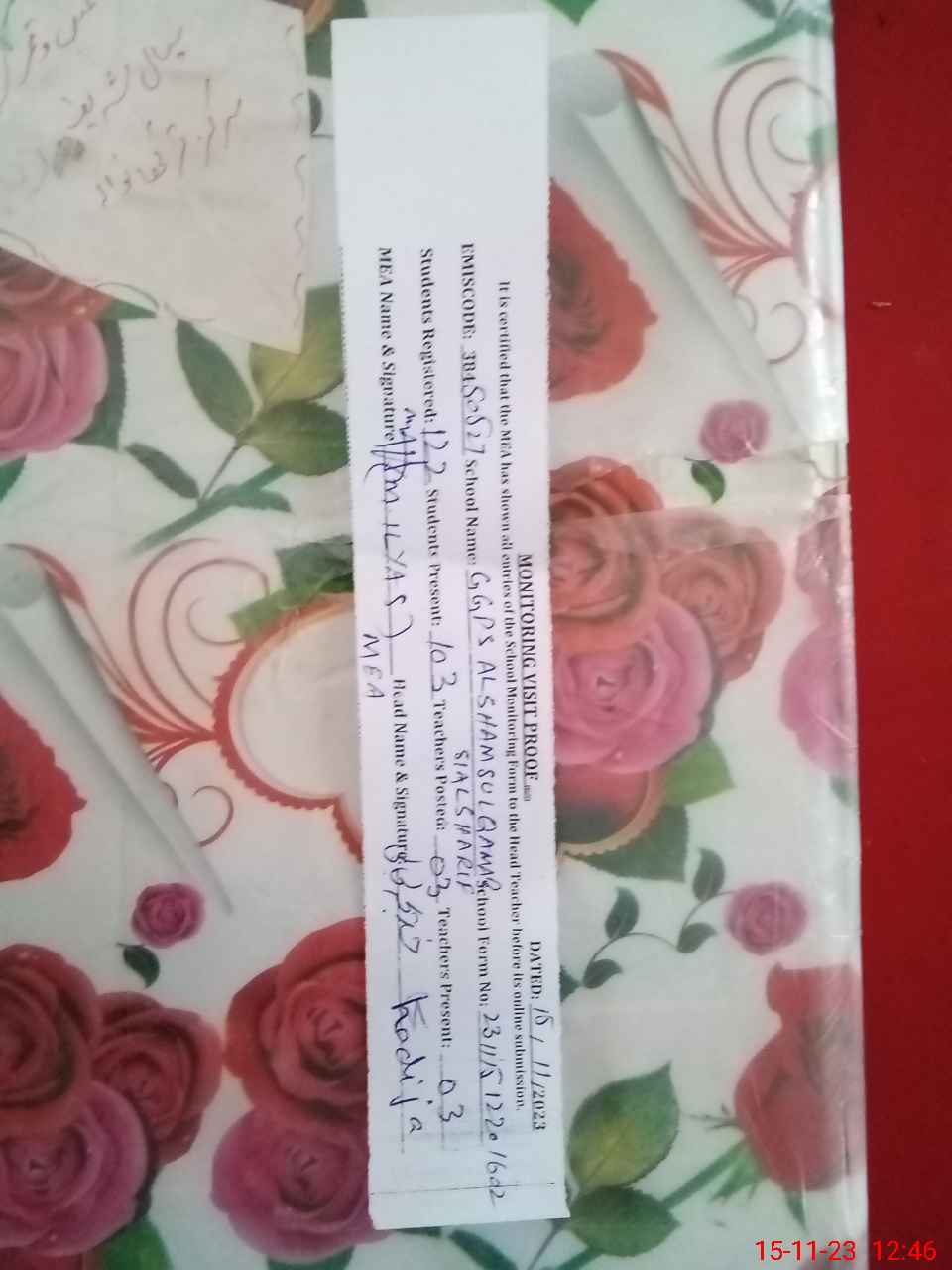 | EMIS Code: 38450527 | Name of School: GGPS AL-SHAMAS-UL-QAMAR (NEW NAME) | |||