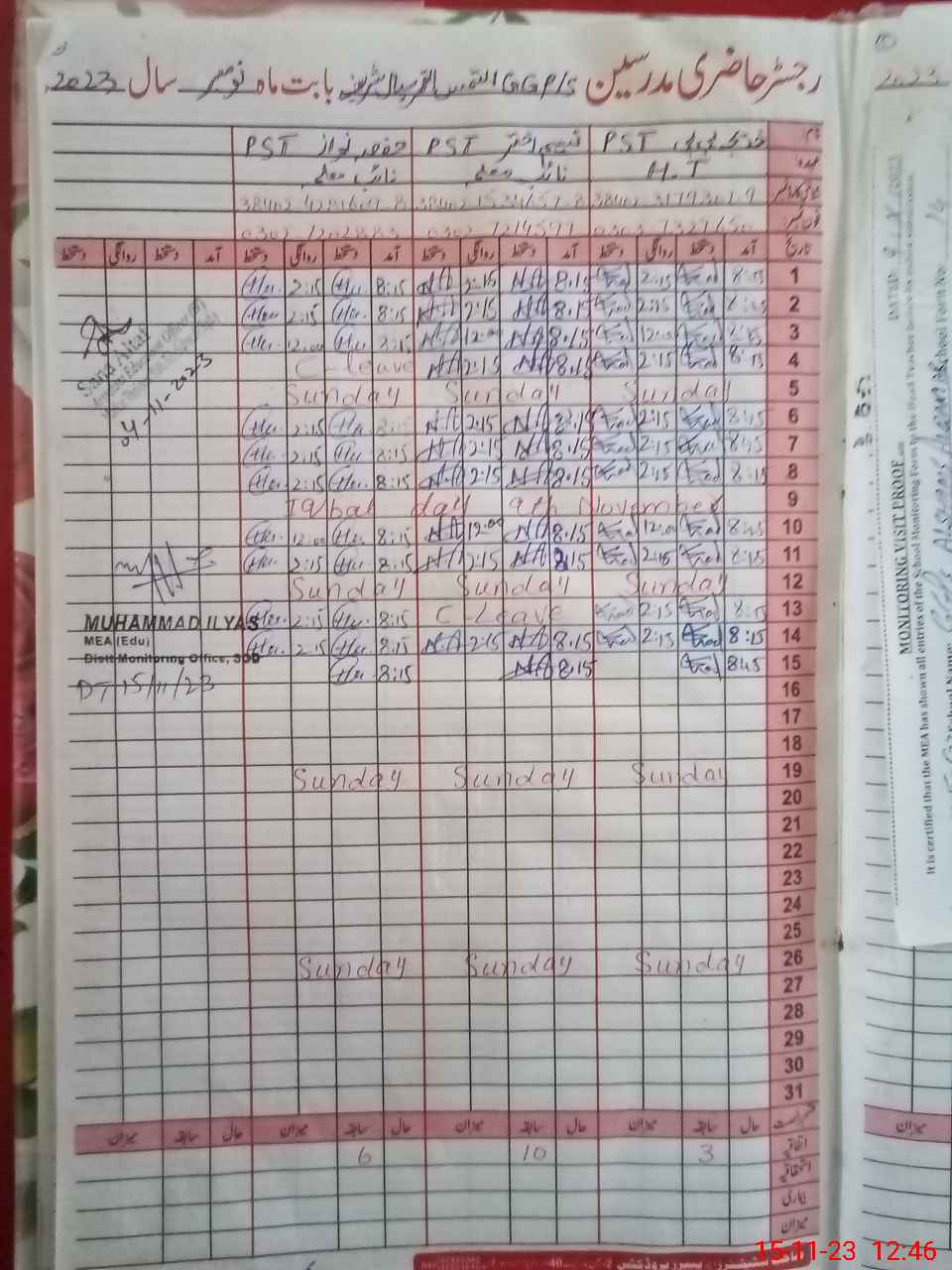 | Name: KH**** BI**** Designation: (School Headmaster's/Headmistress's) PST Phone/Cell Number: 03**** |