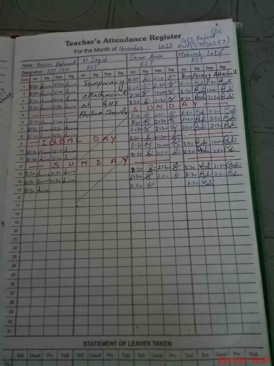 | Name: Ha**** Ma**** Designation: (School Headmaster's/Headmistress's) SST GENERAL Phone/Cell Number: 03**** |