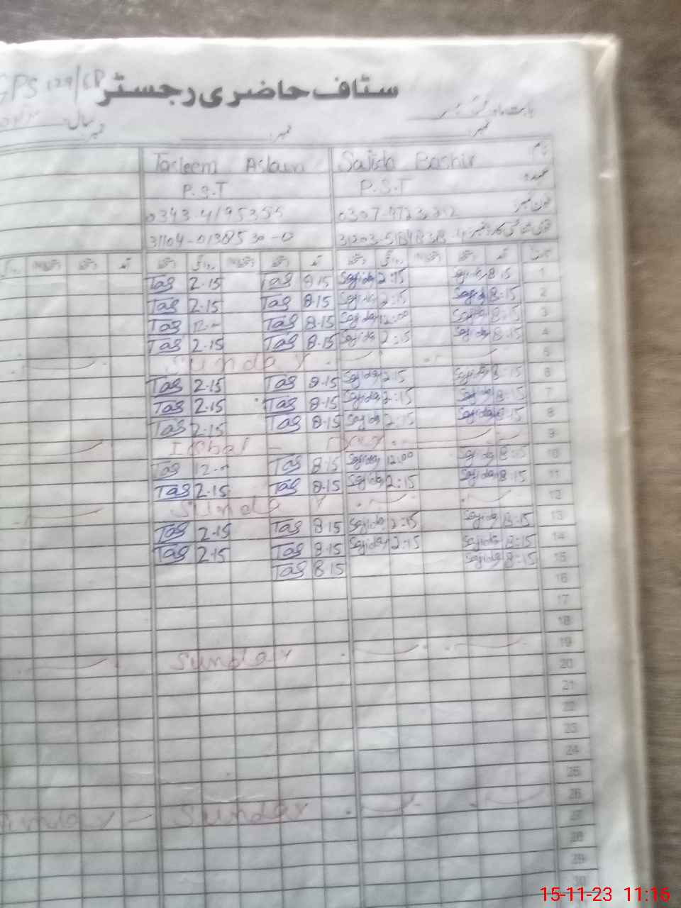 | CNIC | Full Name | Designation | R/C | Absence During Last Calender Month |