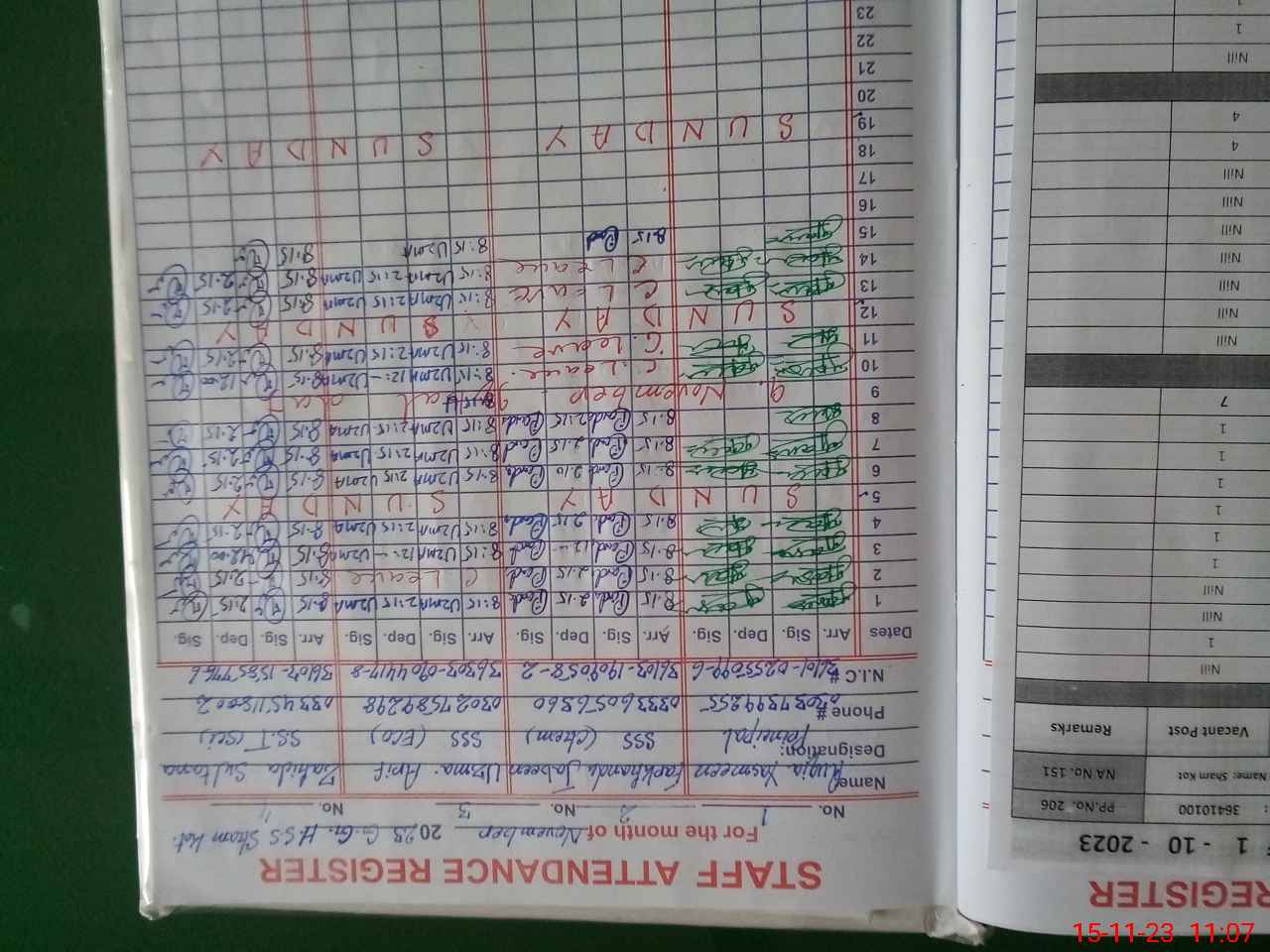 | CNIC | Full Name | Designation | R/C | Absence During Last Calender Month |
