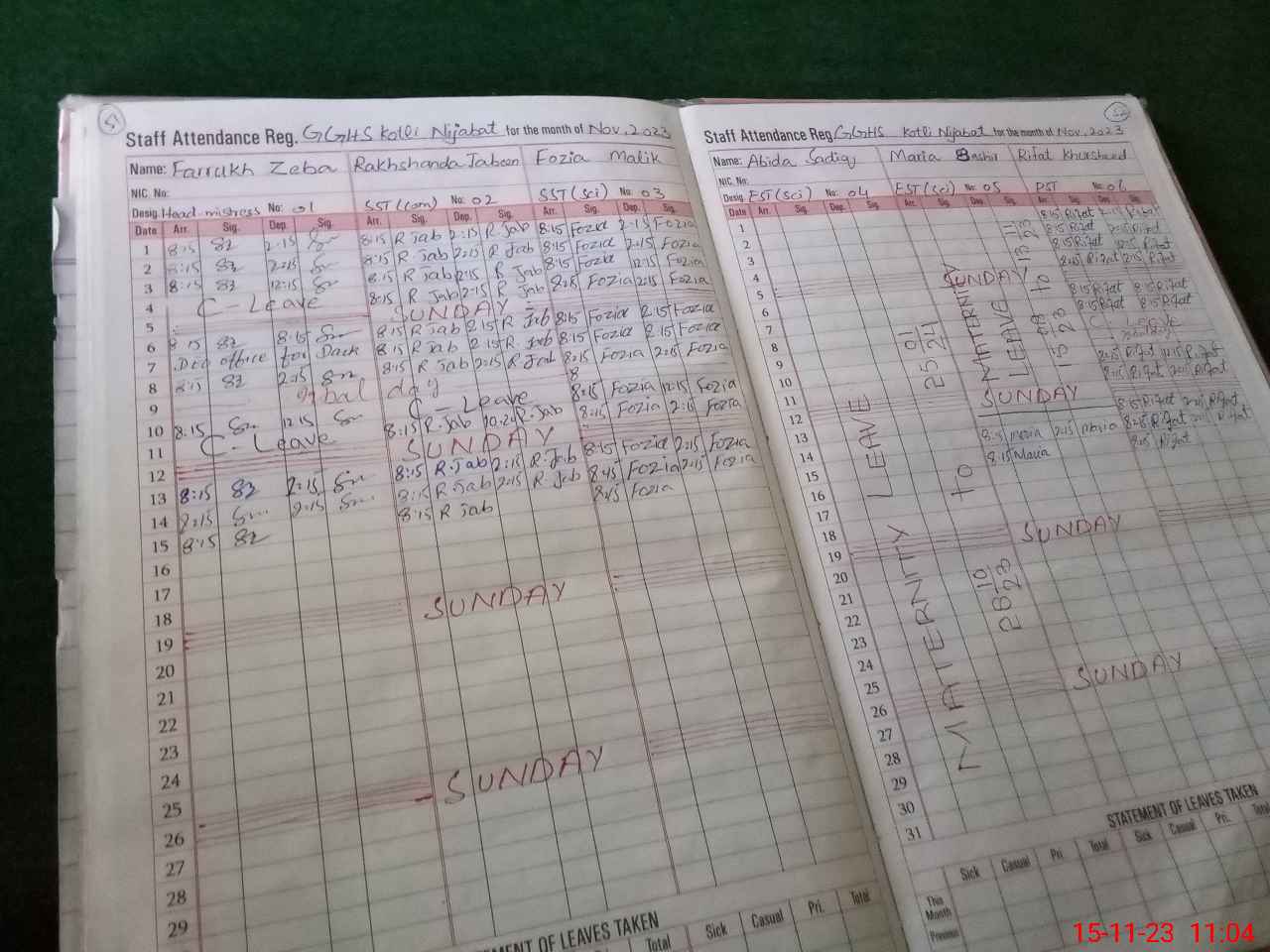 | 36**** | Ab**** Sa**** | 1 | 2 | 0 | 0 | 2 | 0 | 0 | 0 | 0 | 0 | Maternity | |