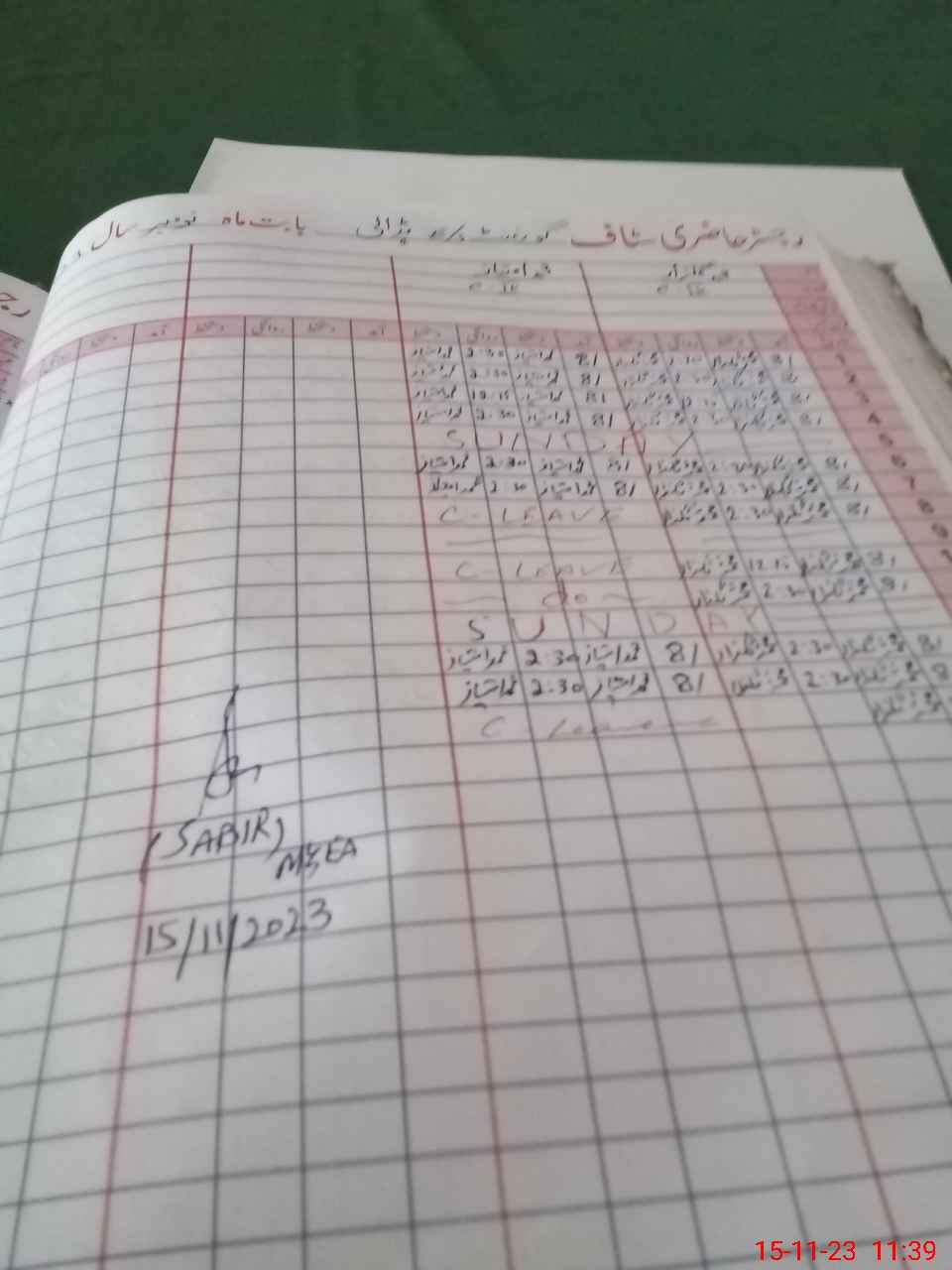 | CNIC | Full Name | Designation | R/C | Absence During Last Calender Month |