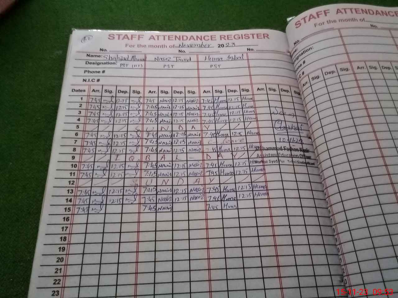 | Name: SH**** AH**** Designation: (School Headmaster's/Headmistress's) PST Phone/Cell Number: 03**** |