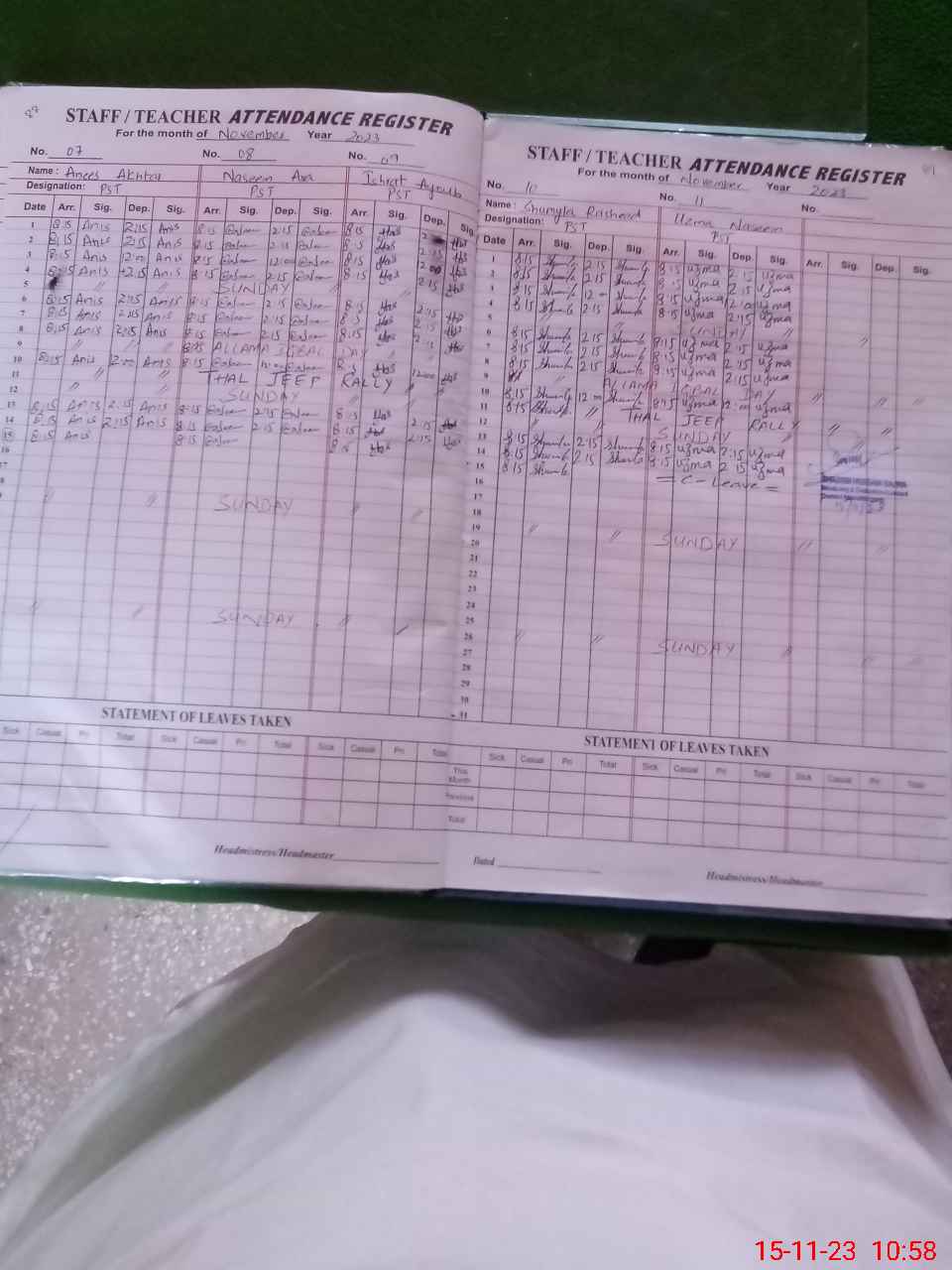 | CNIC | Full Name | Designation | R/C | Absence During Last Calender Month |