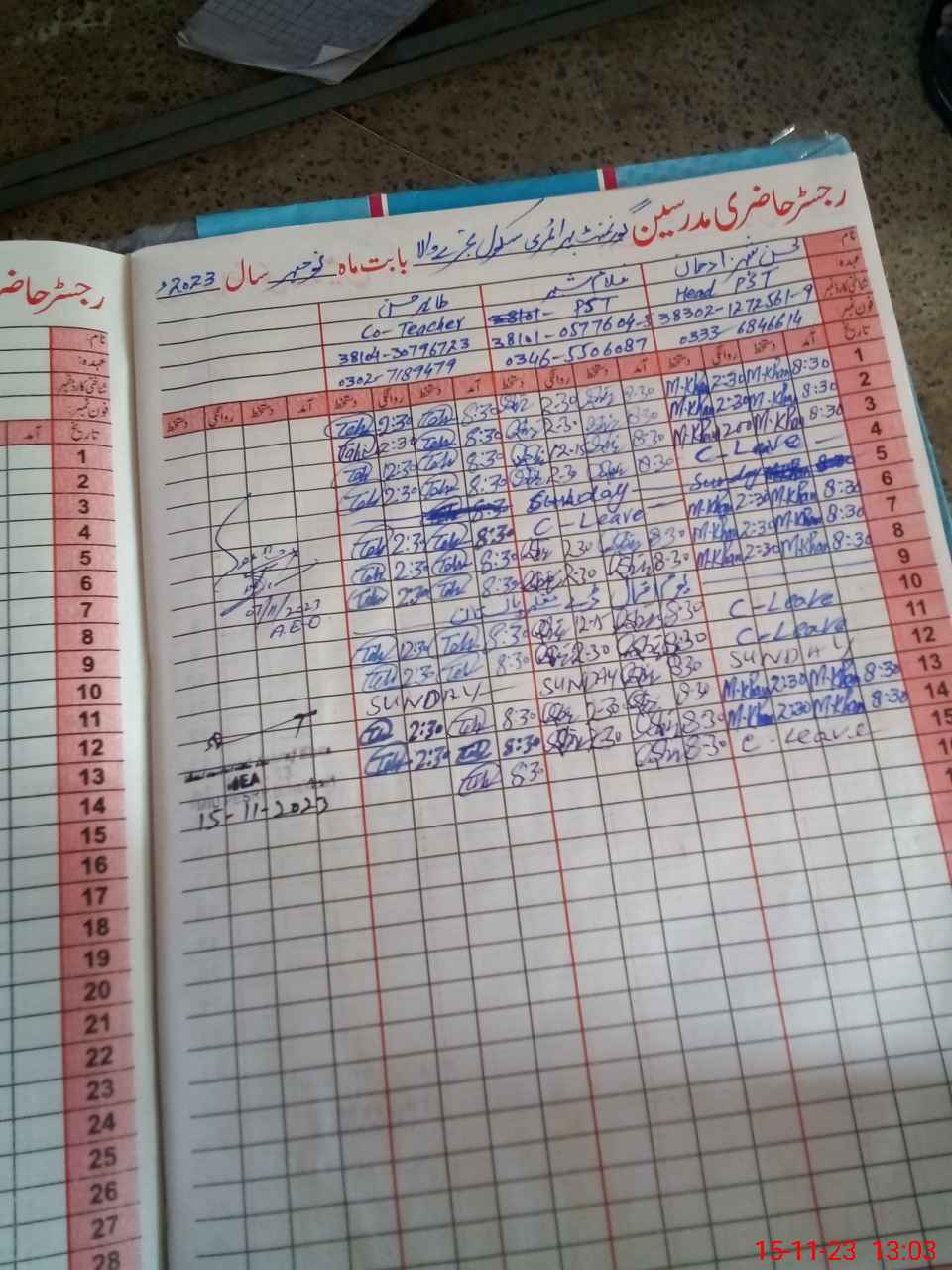 | Name: Qa**** ULHa**** Designation: (School Headmaster's/Headmistress's) PTC/JV Phone/Cell Number: 03**** |