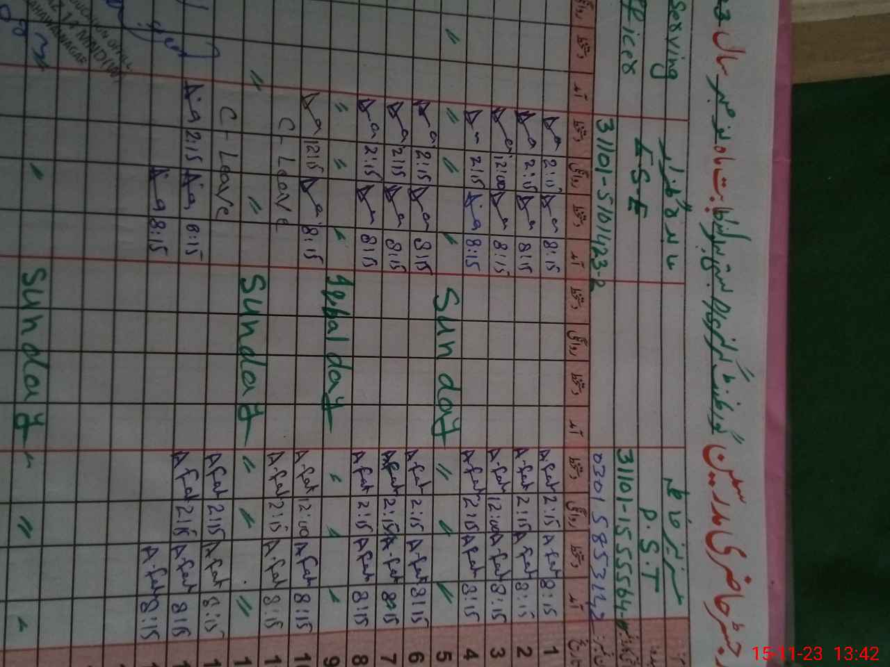 | CNIC | Full Name | Designation | R/C | Absence During Last Calender Month |