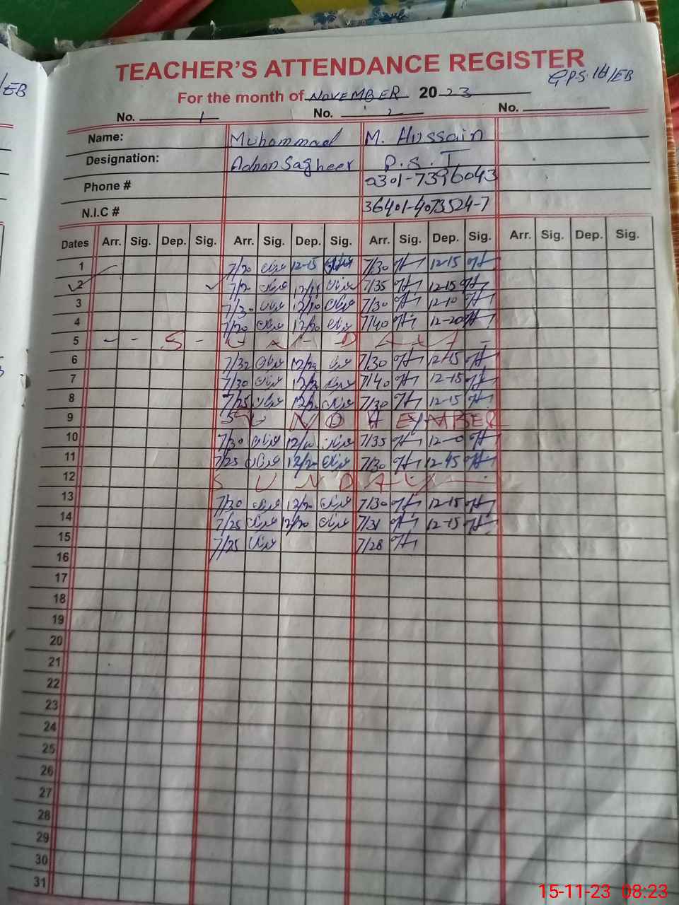 | Name: MU**** AD**** Designation: (School Headmaster's/Headmistress's) PST Phone/Cell Number: 03**** |