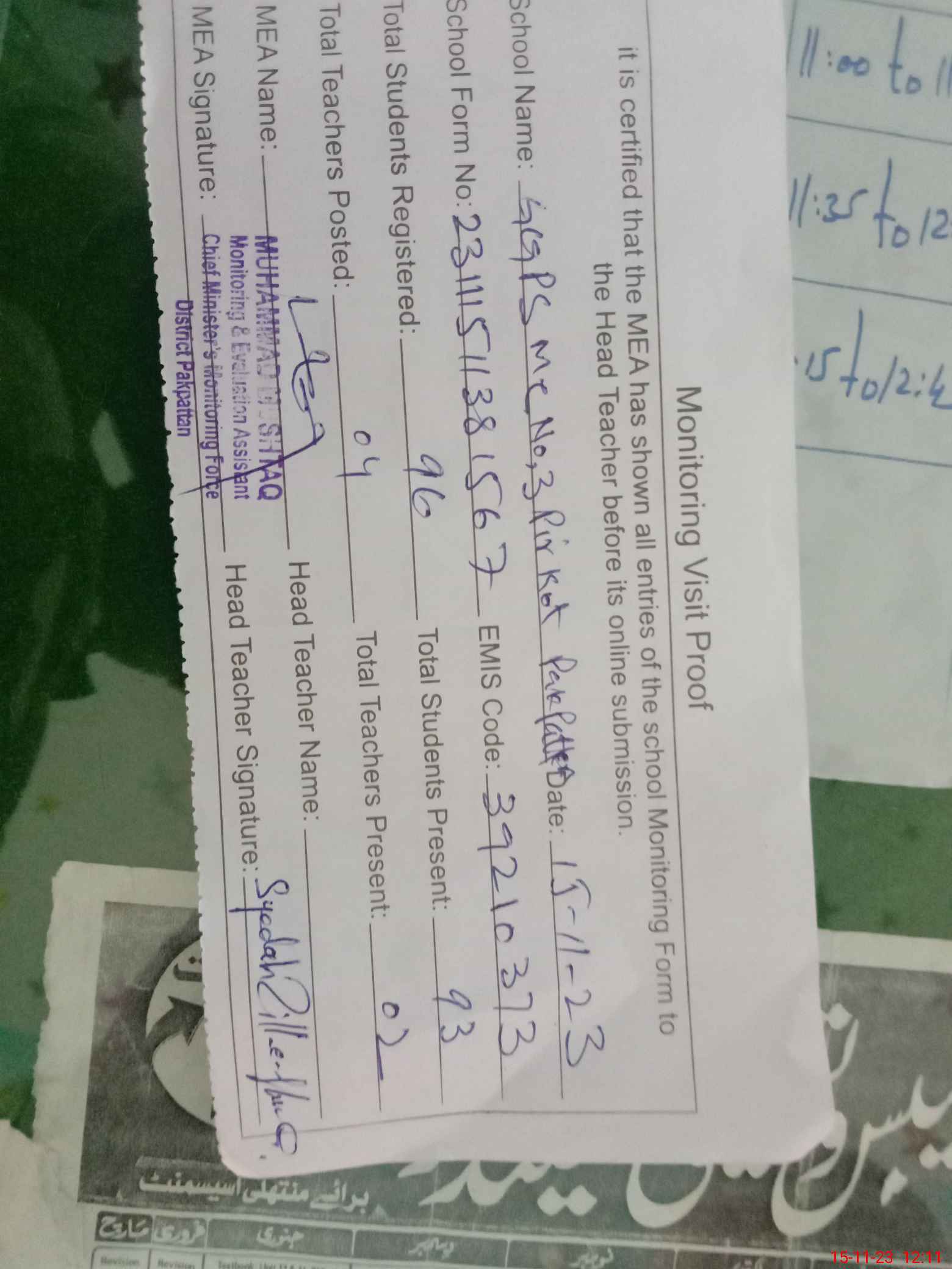 | EMIS Code: 39210373 | Name of School: GGPS MC NO. 3 PIR KOT PAKPATTAN | |||