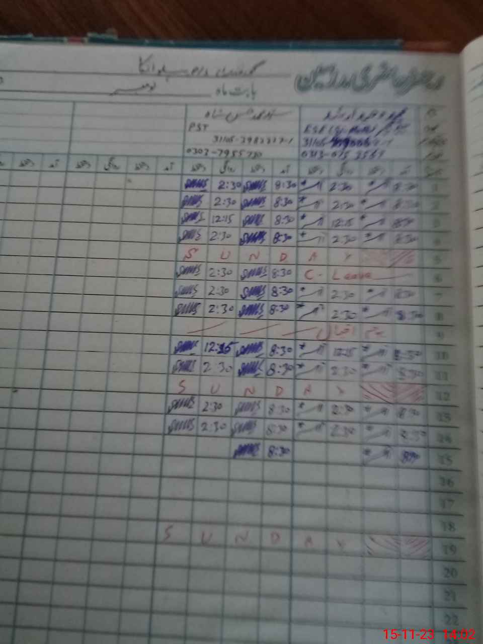 | CNIC | Full Name | Designation | R/C | Absence During Last Calender Month |