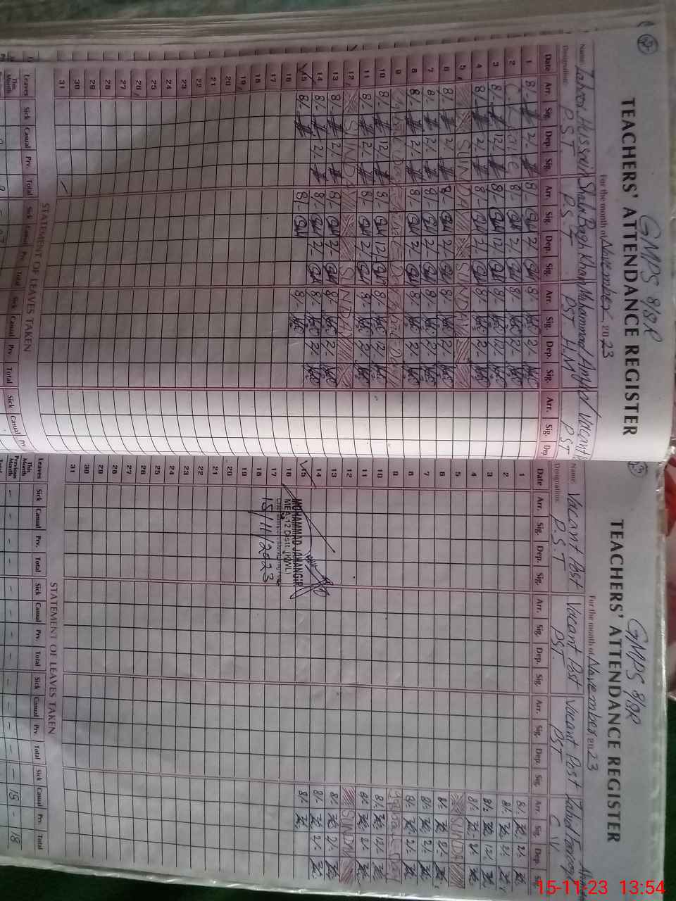 | CNIC | Full Name | Designation | R/C | Absence During Last Calender Month |