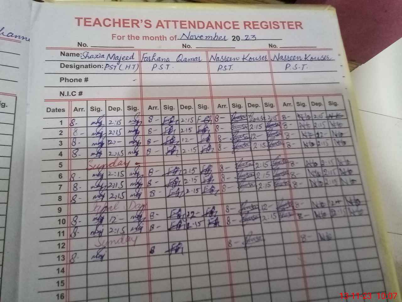 | Name: SH**** MA**** Designation: (School Headmaster's/Headmistress's) PST Phone/Cell Number: 03**** |