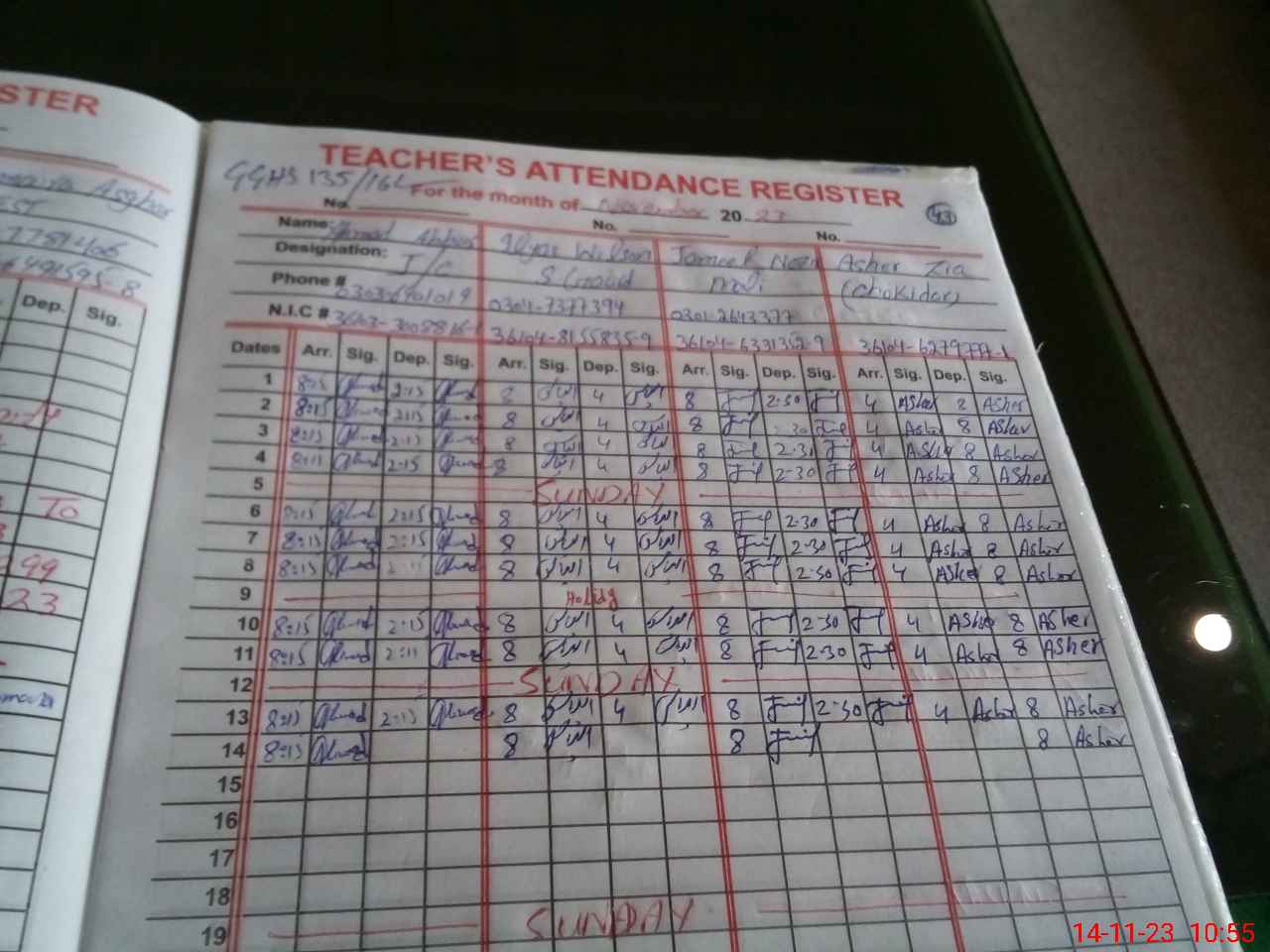 | Name: SA**** AB**** Designation: (School Headmaster's/Headmistress's) SST GENERAL Phone/Cell Number: 03**** |