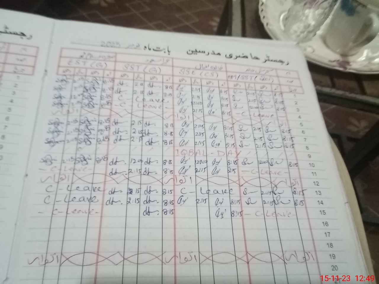 | CNIC | Full Name | Designation | R/C | Absence During Last Calender Month |