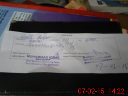 | District: SHEIKHUPURA | Tehsil: SHARAQPUR | Markaz: GHAZI PUR-MALE | Level: Primary | |