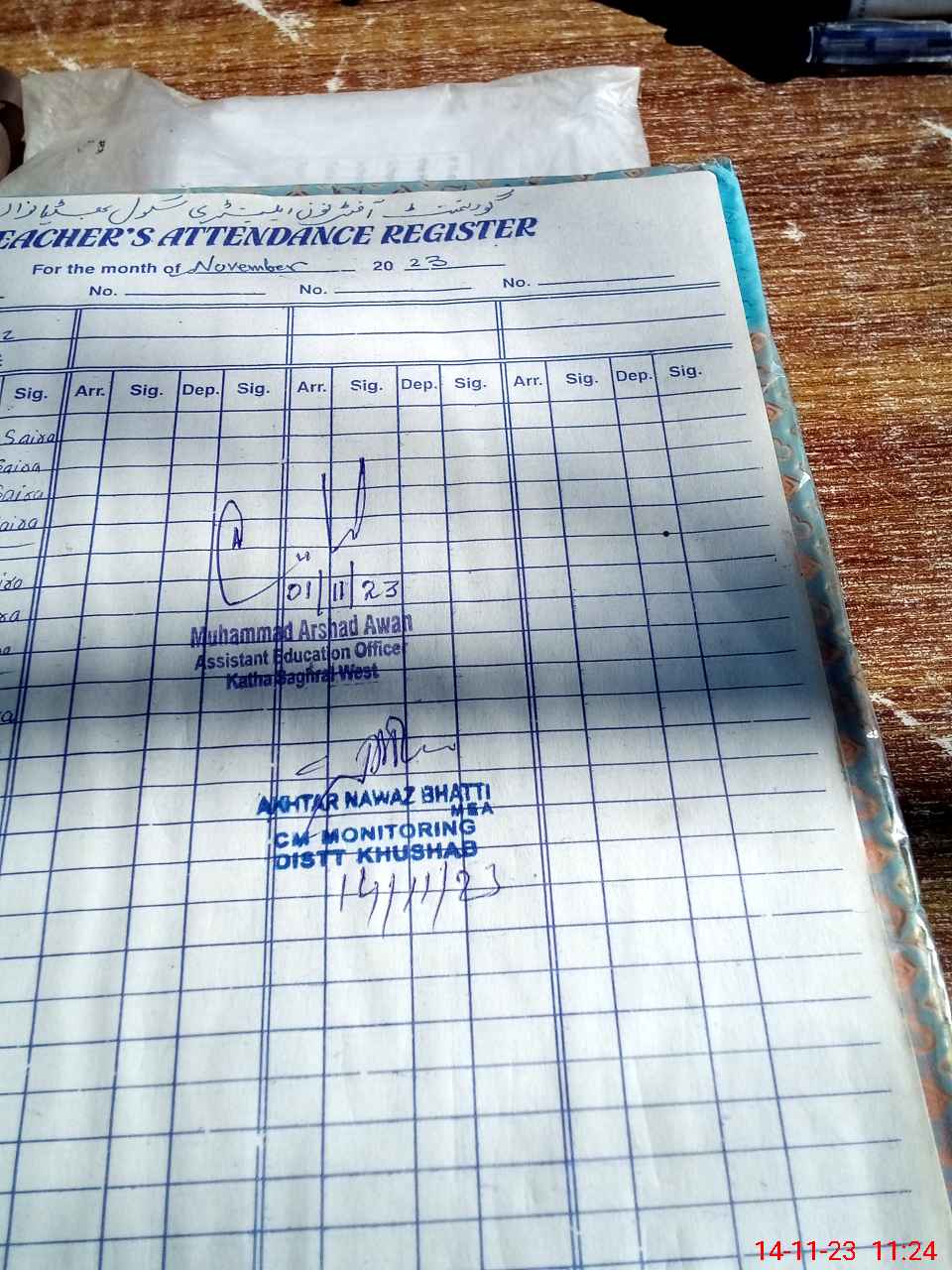 | Monitoring Date: 14-11-2023 | Start Time: 14-11-2023 11:28 AM | End Time: 14-11-2023 11:24 AM | Name of MEA: AK**** NA**** (R**** | |