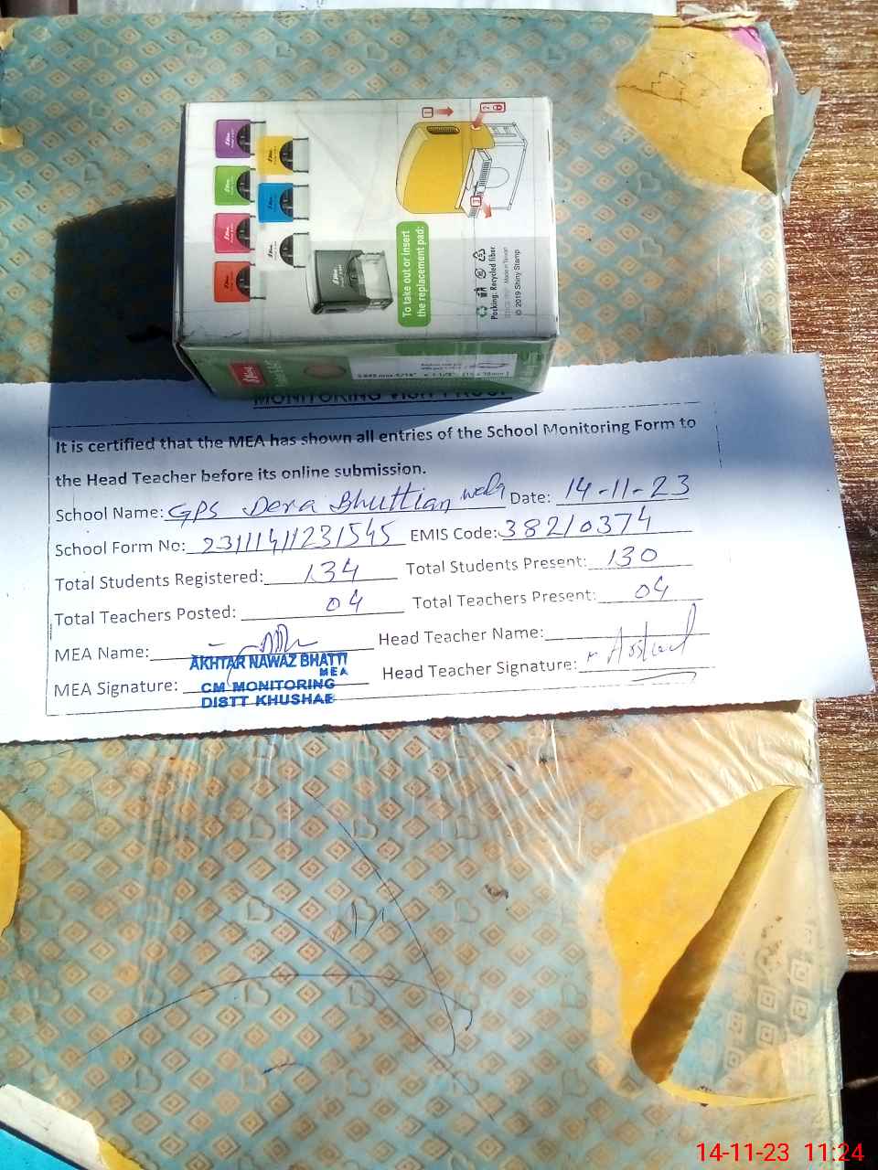 | Attendance Register | Head Teacher | MEA with School | Visit Proof |