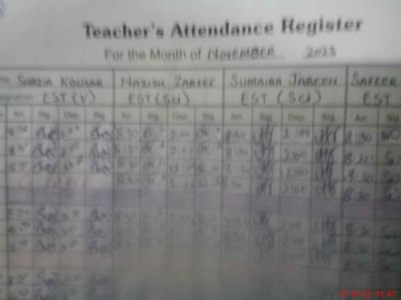 | Monitoring Date: 11-11-2023 | Start Time: 11-11-2023 11:03 AM | End Time: 11-11-2023 11:54 AM | Name of MEA: ZA**** ULAB**** (R**** | |