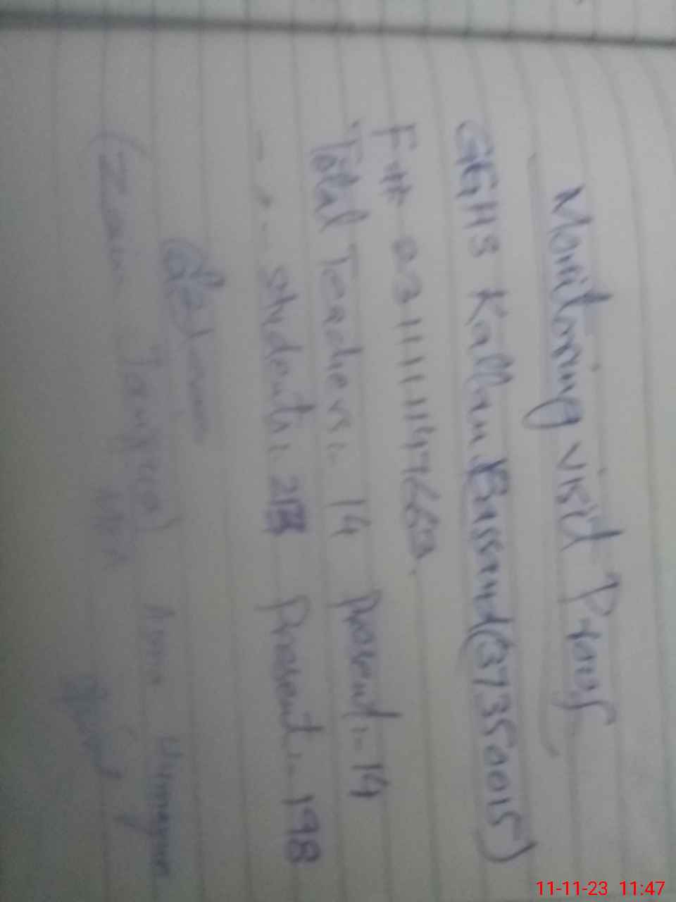 | Attendance Register | Head Teacher | MEA with School | Visit Proof |