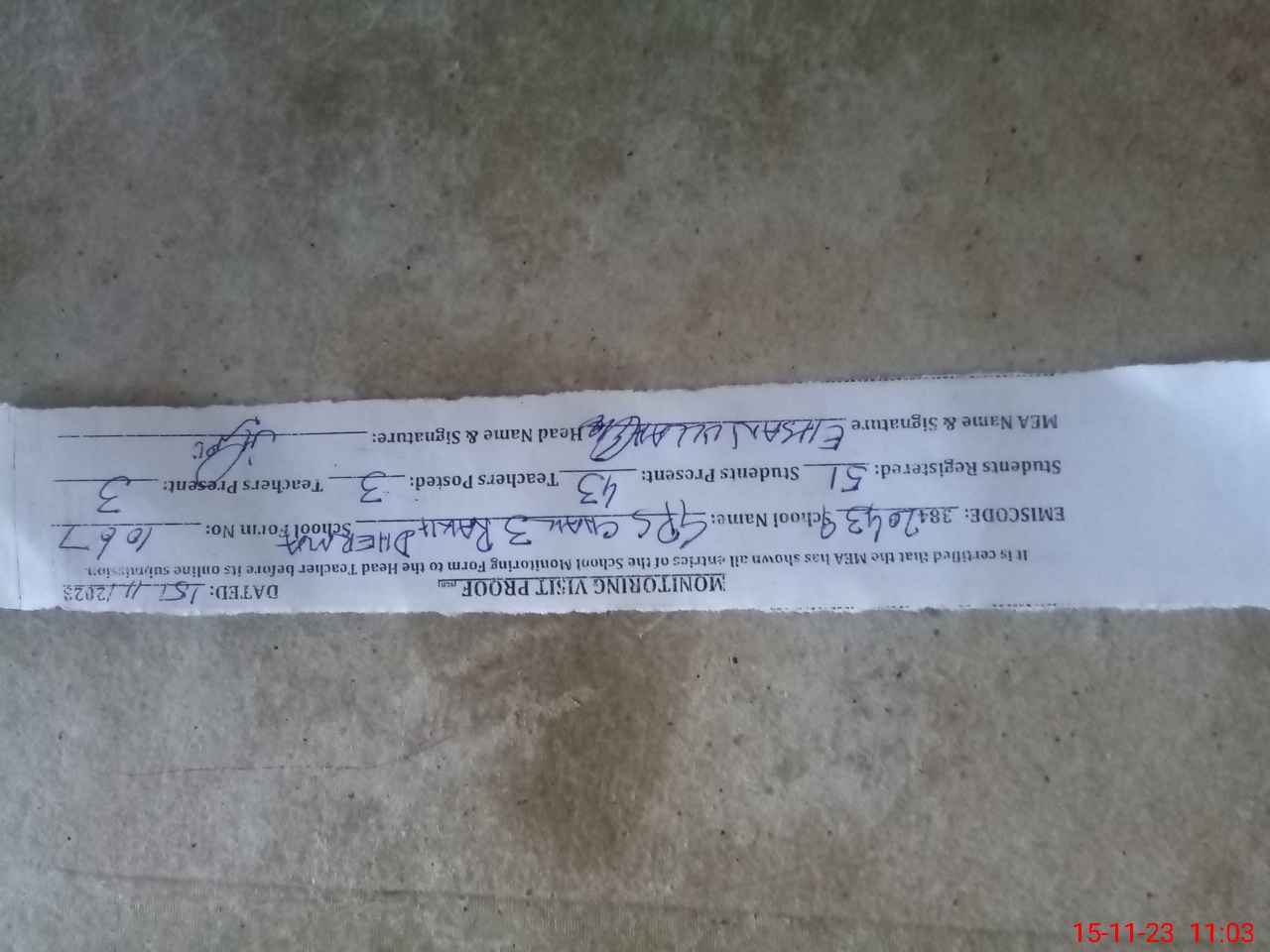 | Attendance Register | Head Teacher | MEA with School | Visit Proof |