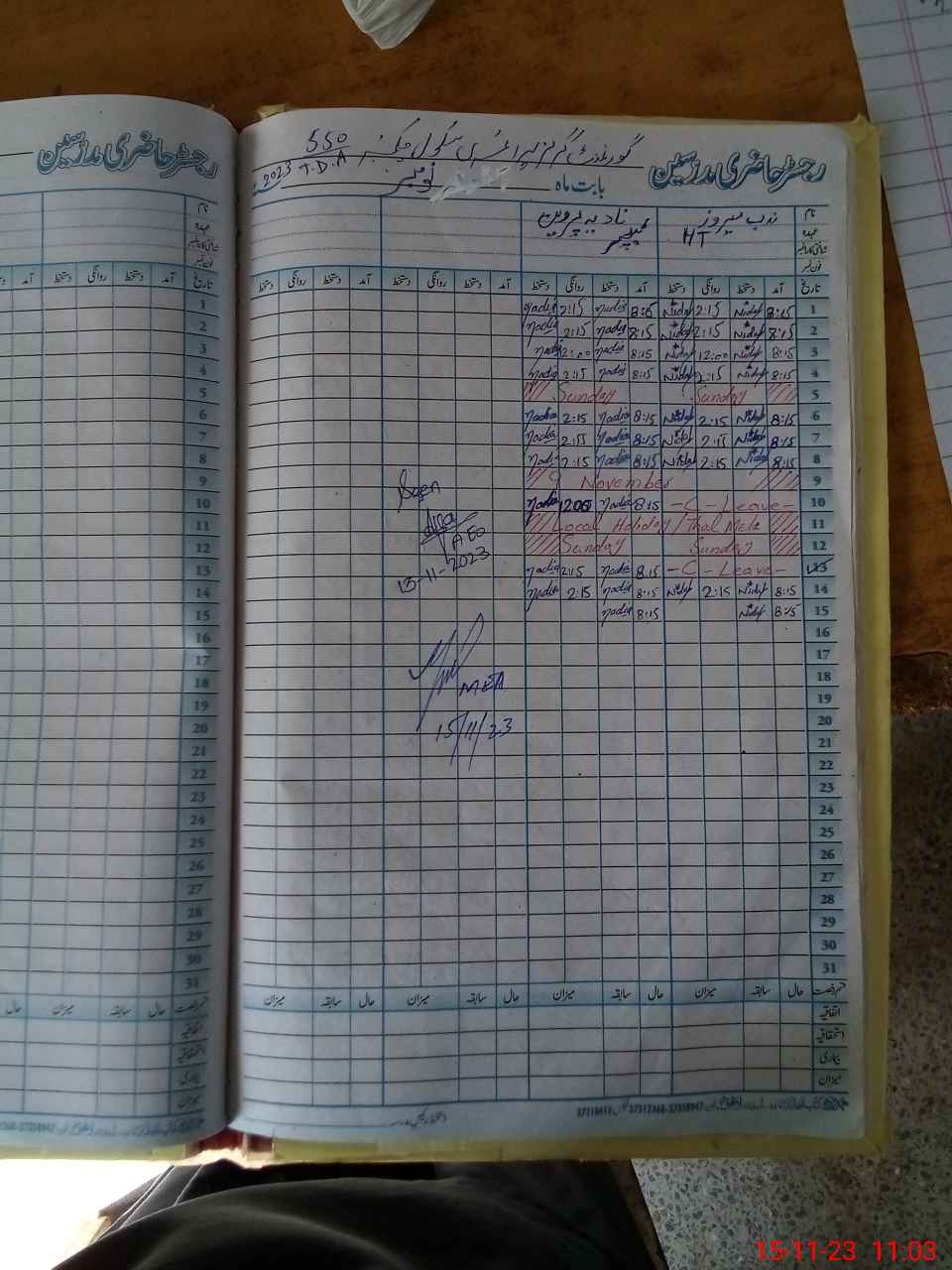 | CNIC | Full Name | Designation | R/C | Absence During Last Calender Month |