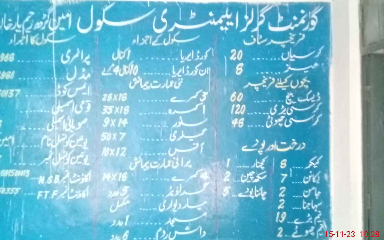 | District: RAHIMYAR KHAN | Tehsil: RAHIMYAR KHAN | Markaz: AMIN GARH - FEMALE | Level: Middle | |