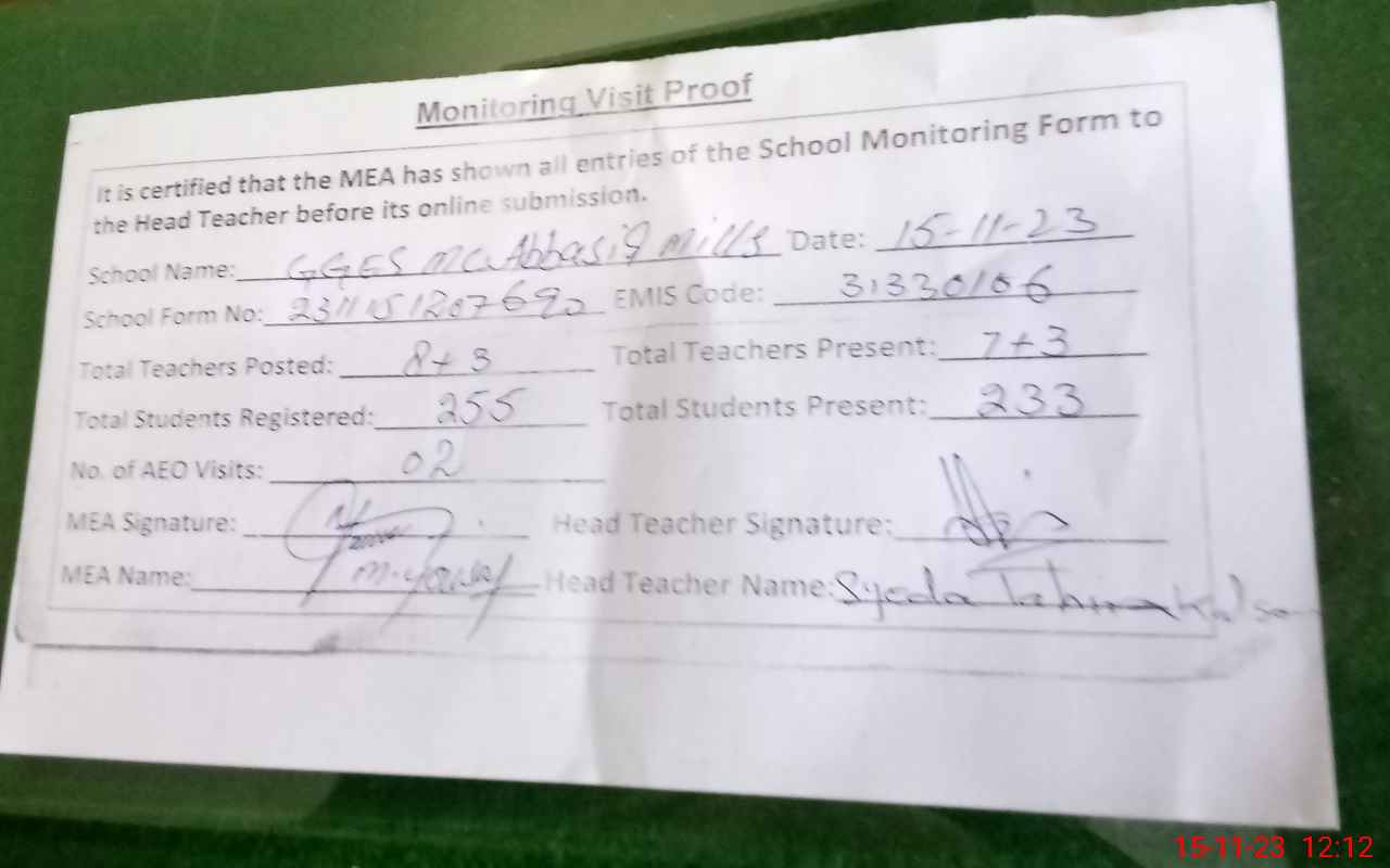| EMIS Code: 31330106 | Name of School: GGES MC ABBASI MILLS AREA | |||