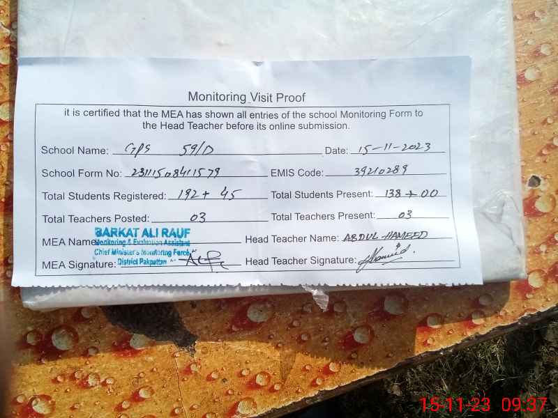 | EMIS Code: 39210289 | Name of School: GPS 59/D | |||