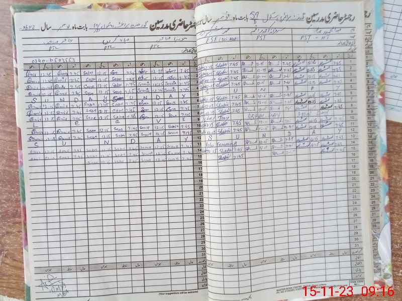 | CNIC | Full Name | Designation | R/C | Absence During Last Calender Month |