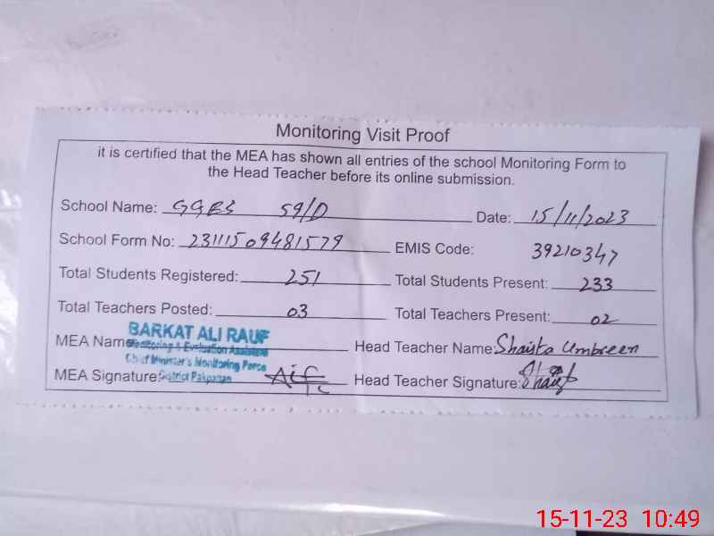 | EMIS Code: 39210347 | Name of School: GGES CHAK NO. 59 D | |||