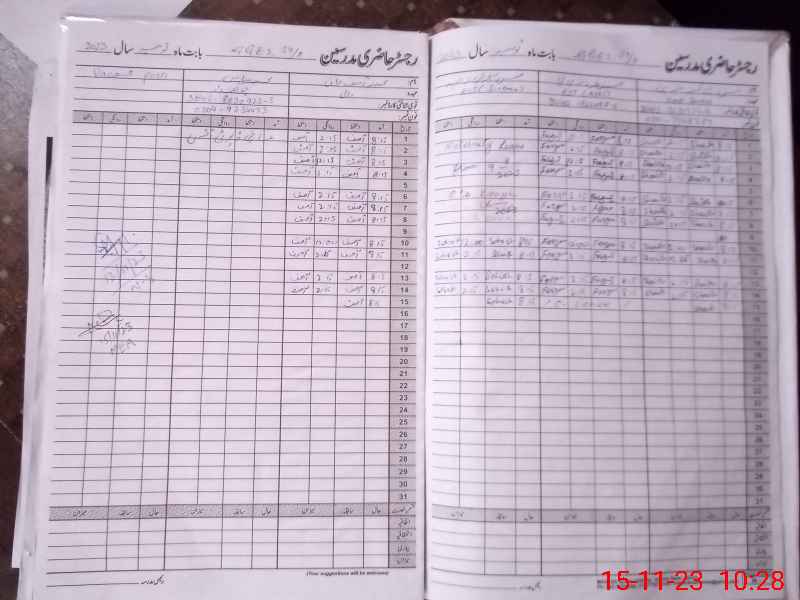 | CNIC | Full Name | Designation | R/C | Absence During Last Calender Month |
