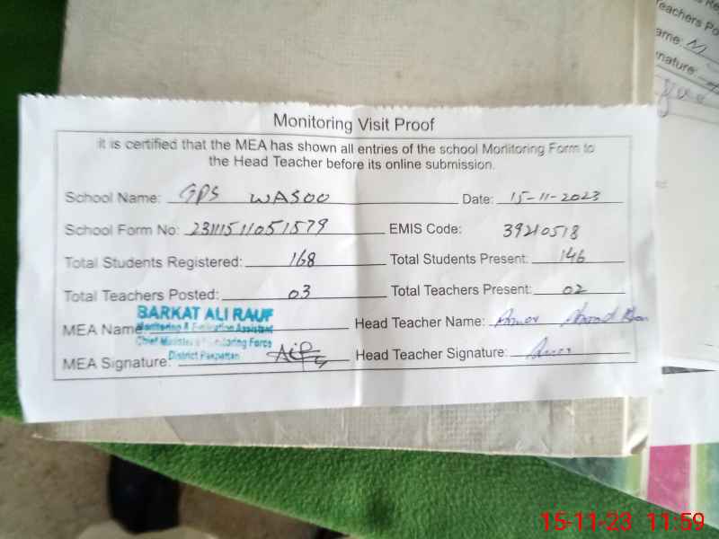 | EMIS Code: 39210518 | Name of School: GPS WASOO | |||