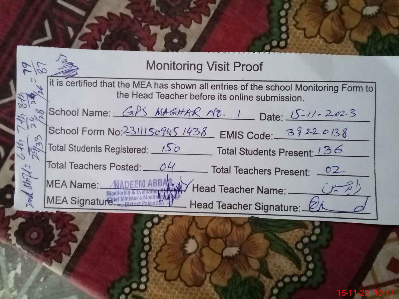 | EMIS Code: 39220138 | Name of School: GPS MAGHER NO. 1 | |||