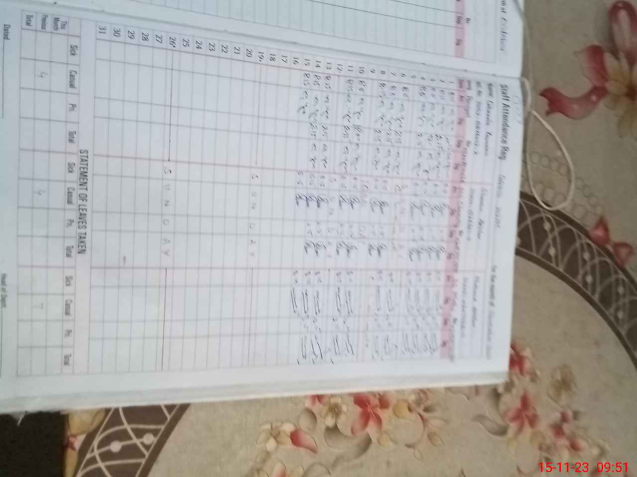 | CNIC | Full Name | Designation | R/C | Absence During Last Calender Month |