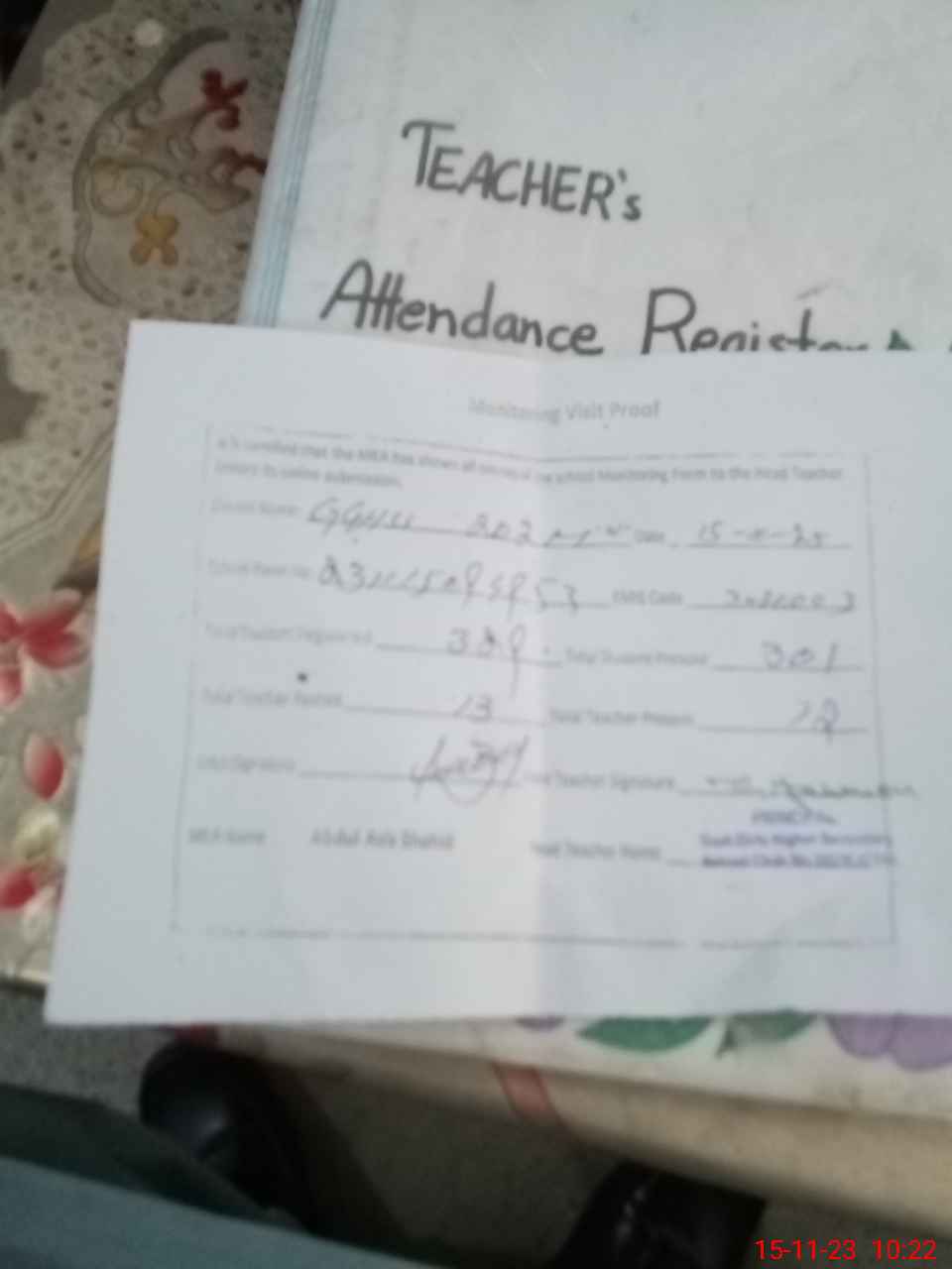 | Attendance Register | Head Teacher | MEA with School | Visit Proof |